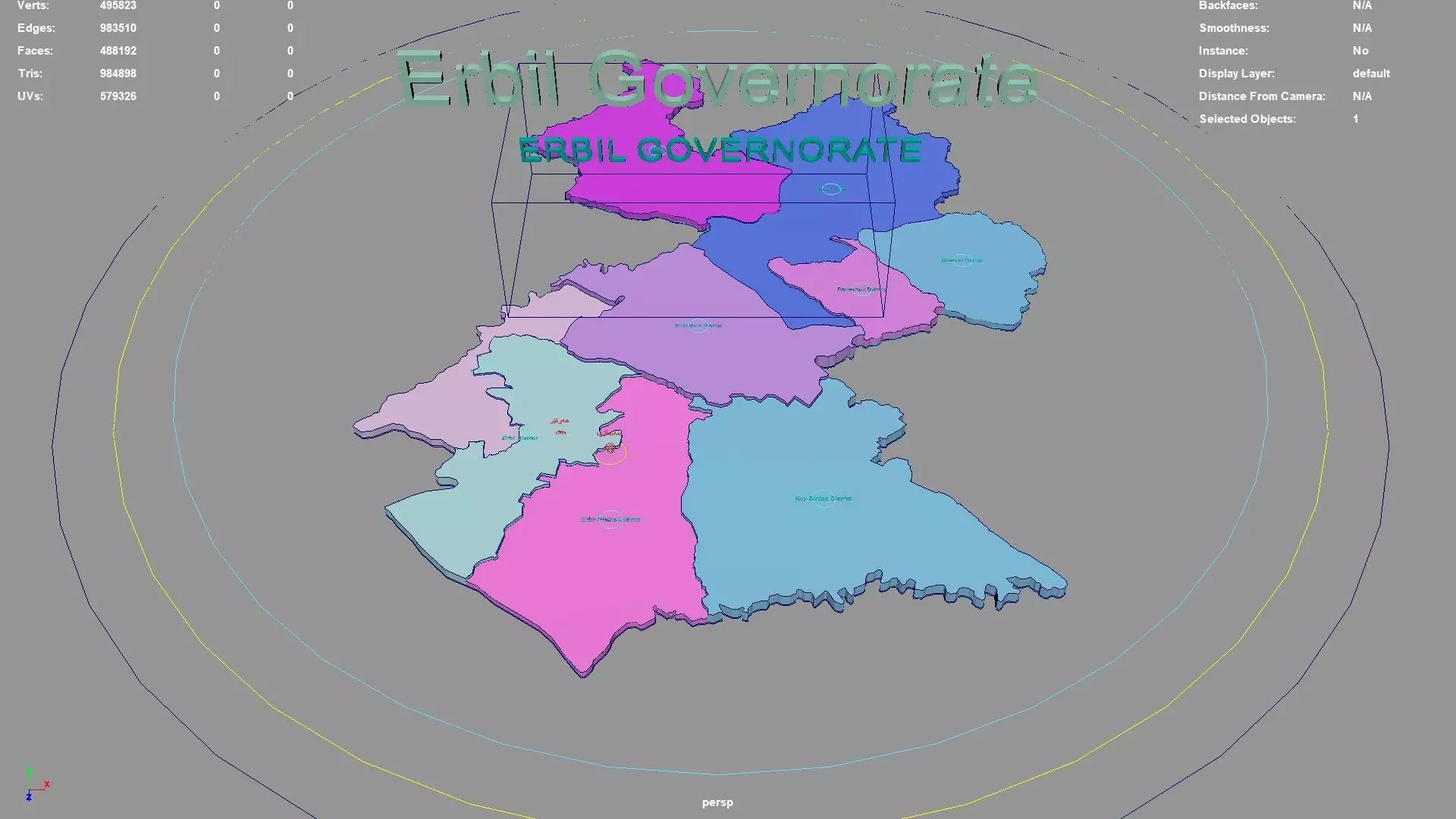 Erbil Governorate, Iraqi Kurdistan Region, Iraq .map,region,geography,political,geographic,administrative division,city Landscape,3D model.