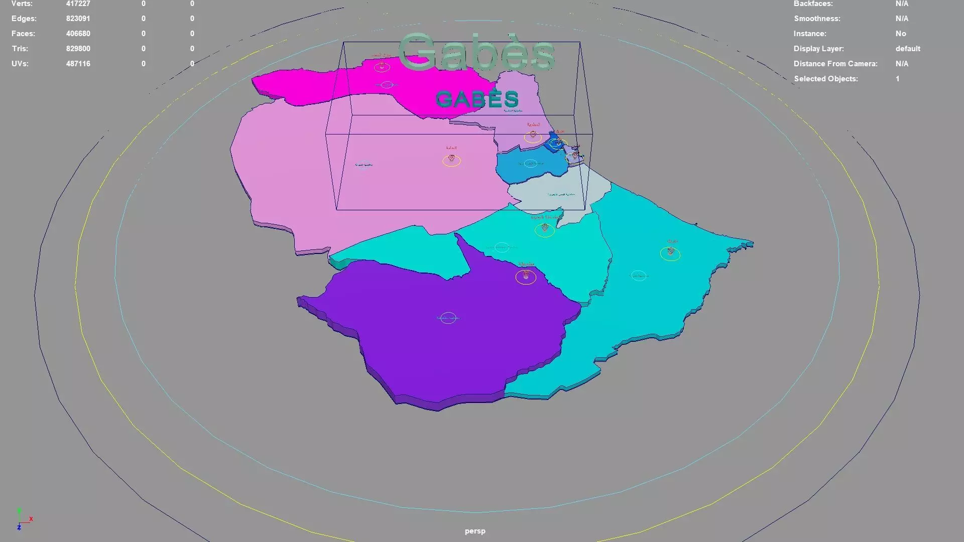 Gabès regions : The model is divided according to the administrative region of Gabès. Each region is clearly separated so you can easily isolate it or change the colors. Names are also editable and separate.