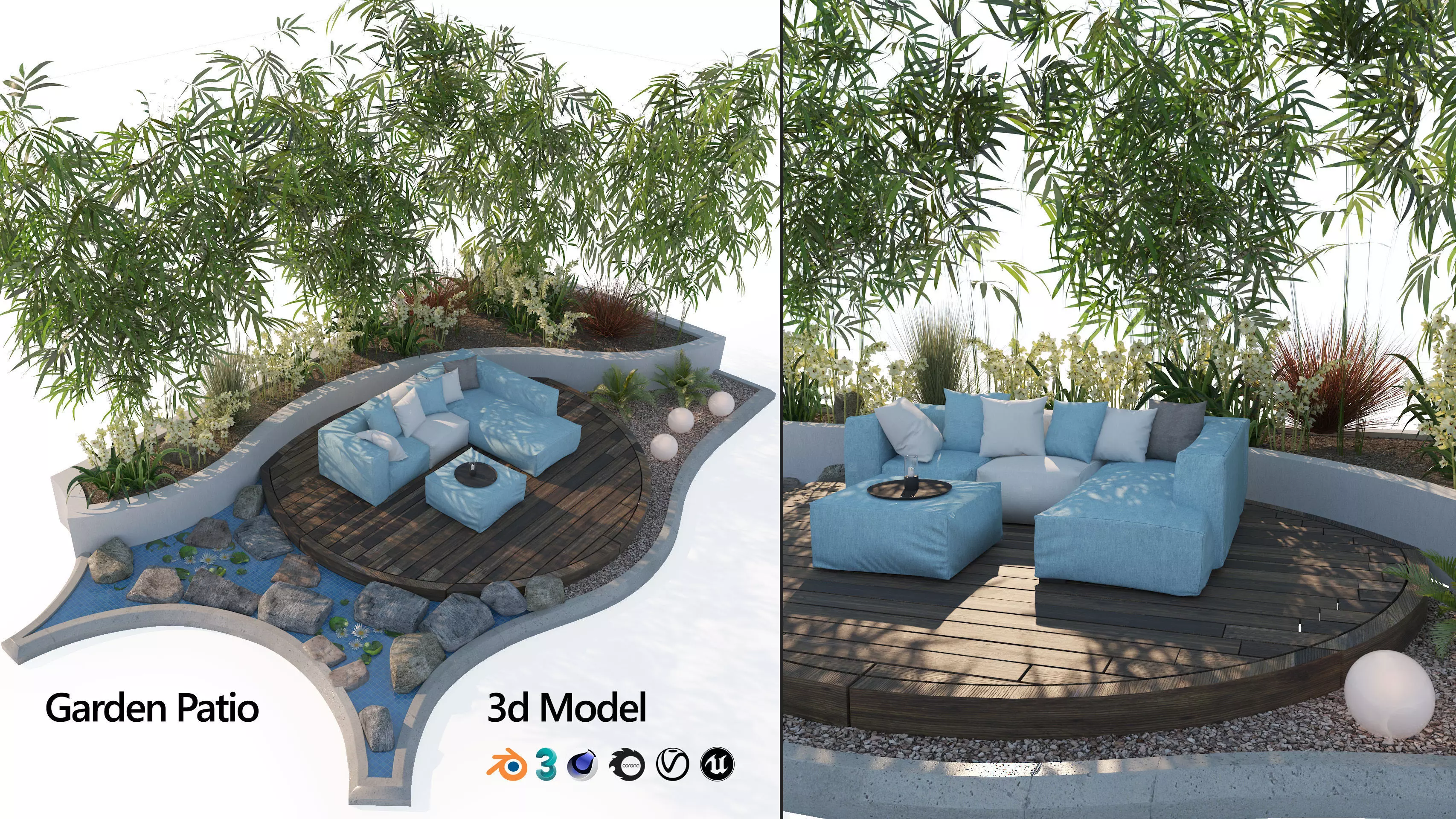 Highly realistic and detailed 3D models of garden patio seating with pool for architectural visualization. the garden seat has a curves form.I optimized the models to be smooth and easy to work ( low poly garden). model contains bamboo plants and flowers. i make the garden model of separated plants and exterior objects, You can pretty much use it in every project because it looks great in a lot of different scenarios and it works well with any architecture style.i created the animation in unreal engine, its ready animation, animation link: https://youtu.be/S6lD8LJA7eQ