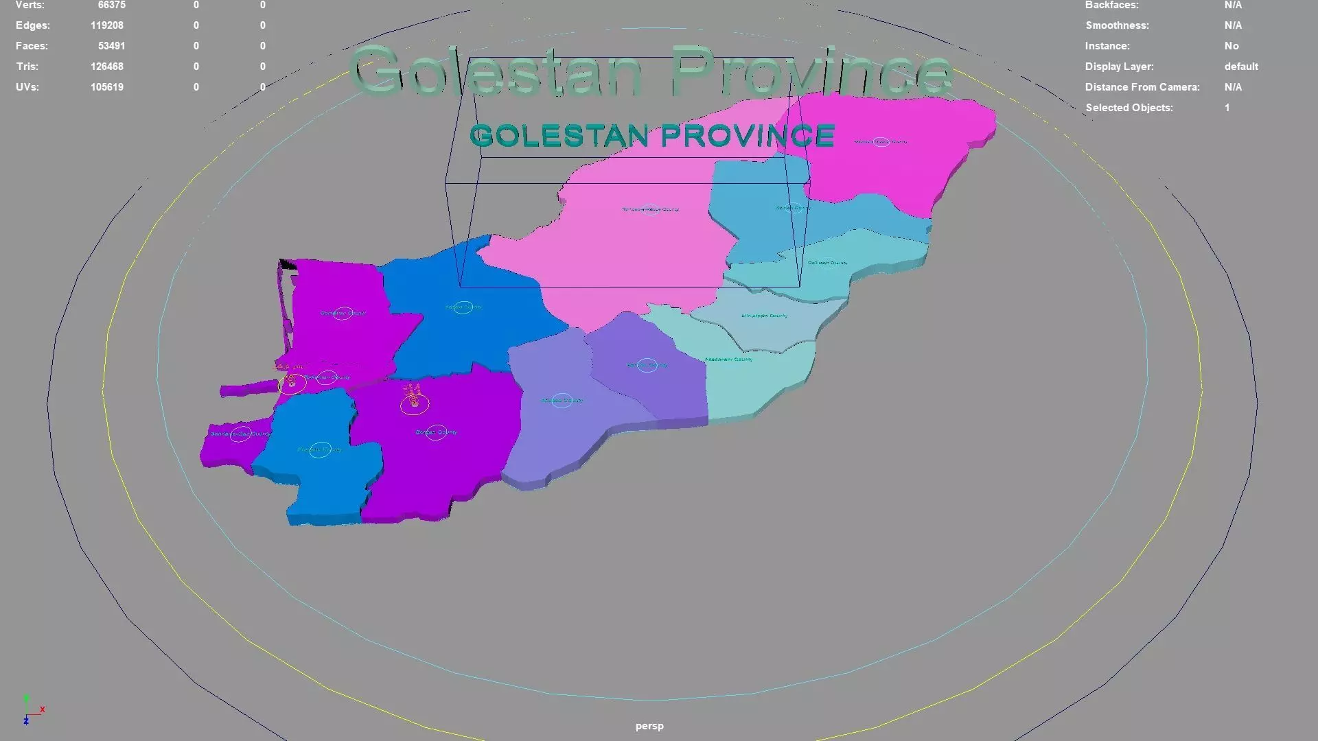Golestan Province regions : The model is divided according to the administrative region of Golestan Province. Each region is clearly separated so you can easily isolate it or change the colors. Names are also editable and separate.