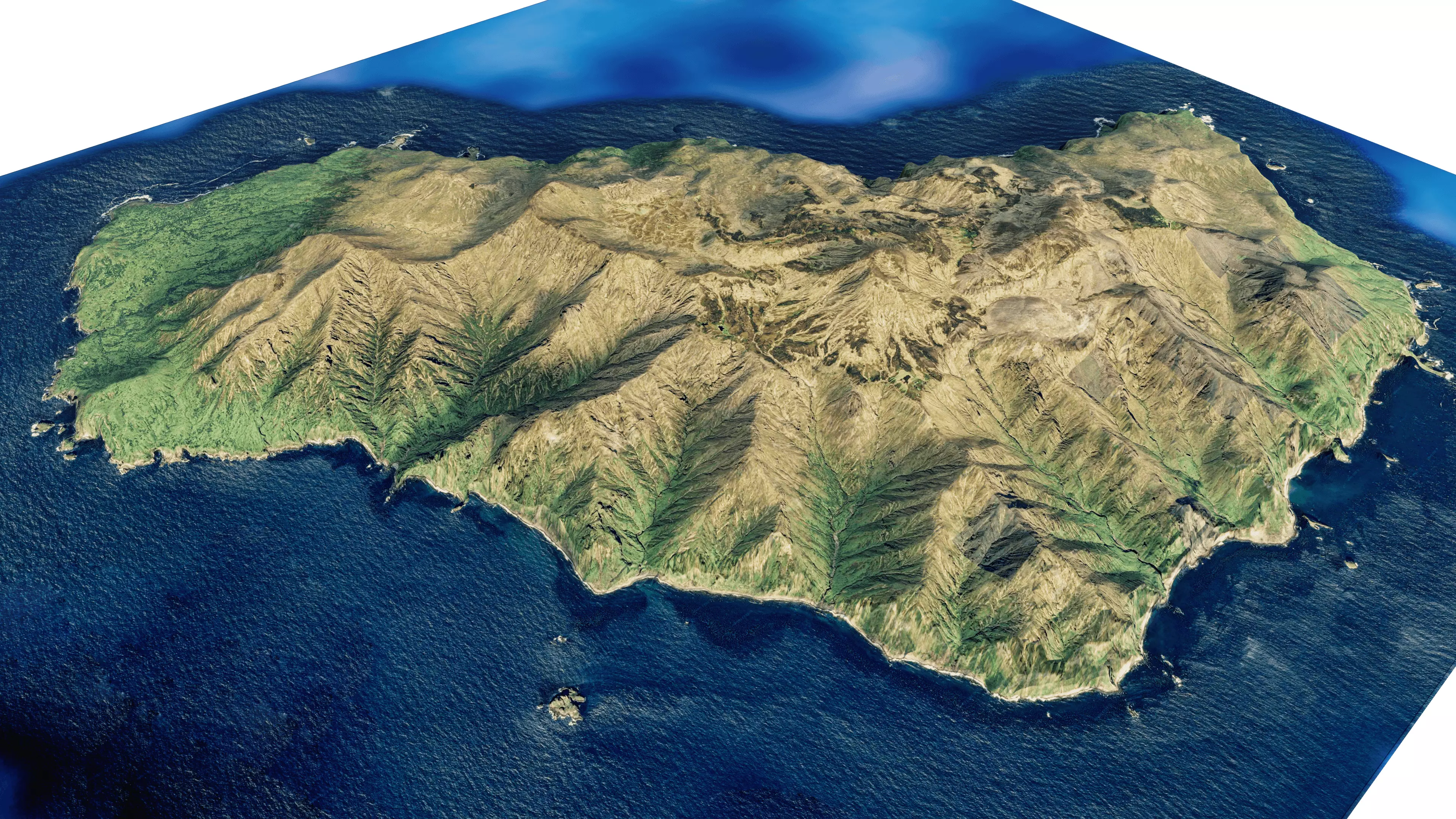 full 3d terrain model of gough island, St Helena, Ascension and Tristan da Cunha, South Atlantic Ocean.