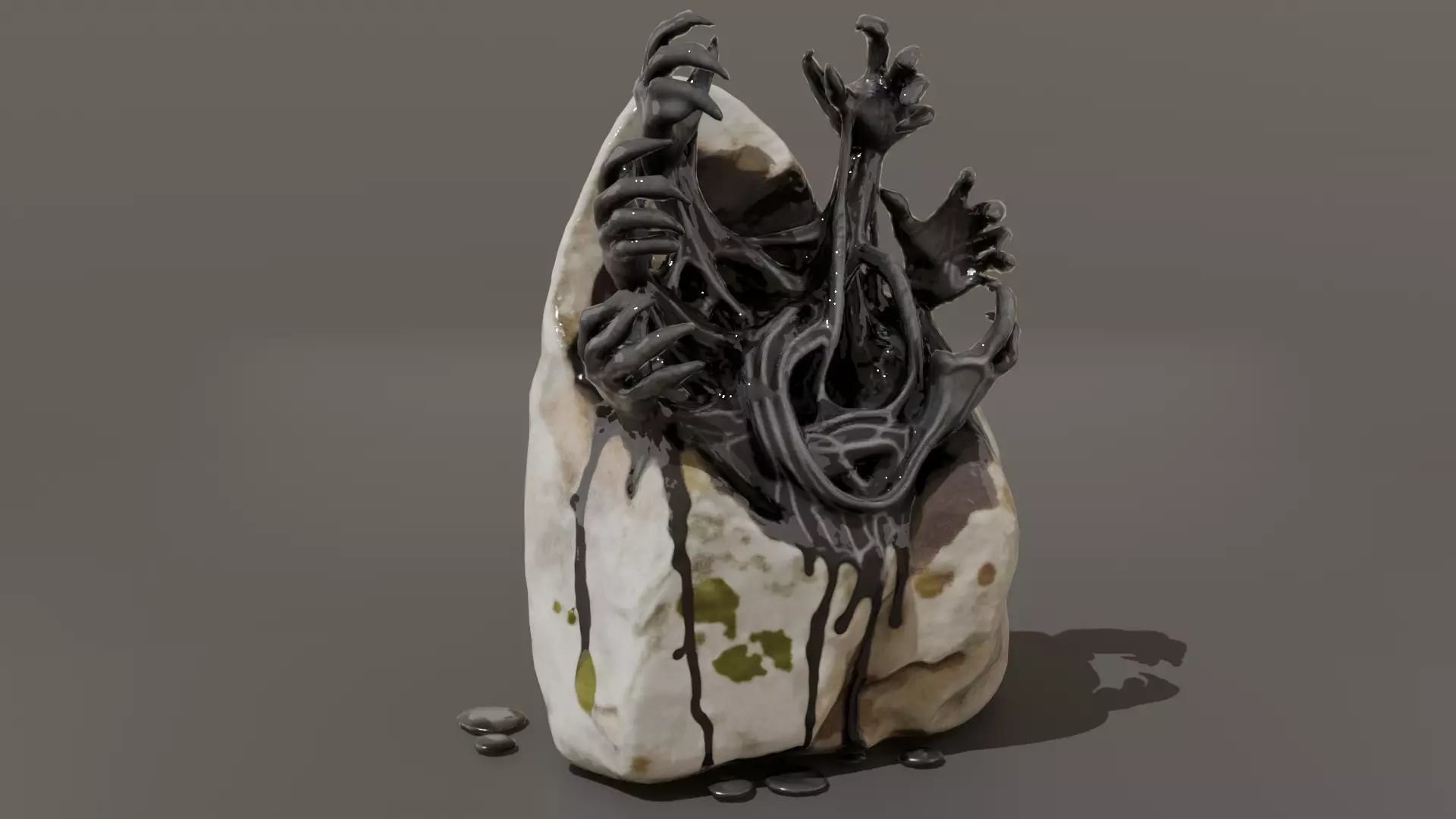 A surreal rock formation shaped like emerging hands, creating a dramatic and eerie visual effect. This unique design makes it ideal for dark fantasy environments such as cursed lands, haunted landscapes, or mysterious ritual locations.