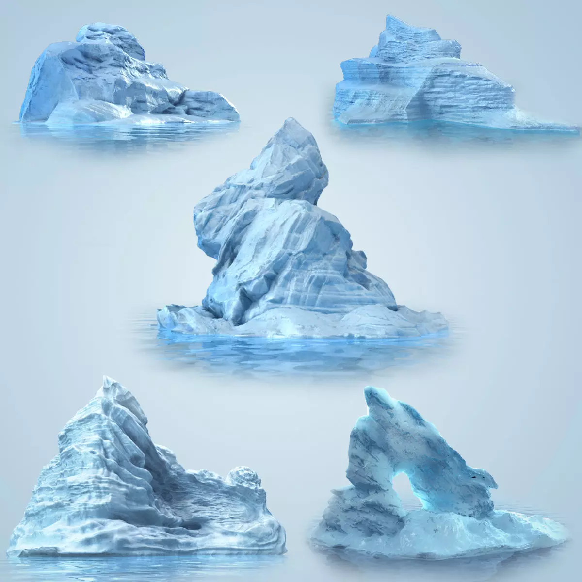 Is a collection of 5 model realistic Iceberg, ready to next gen game.