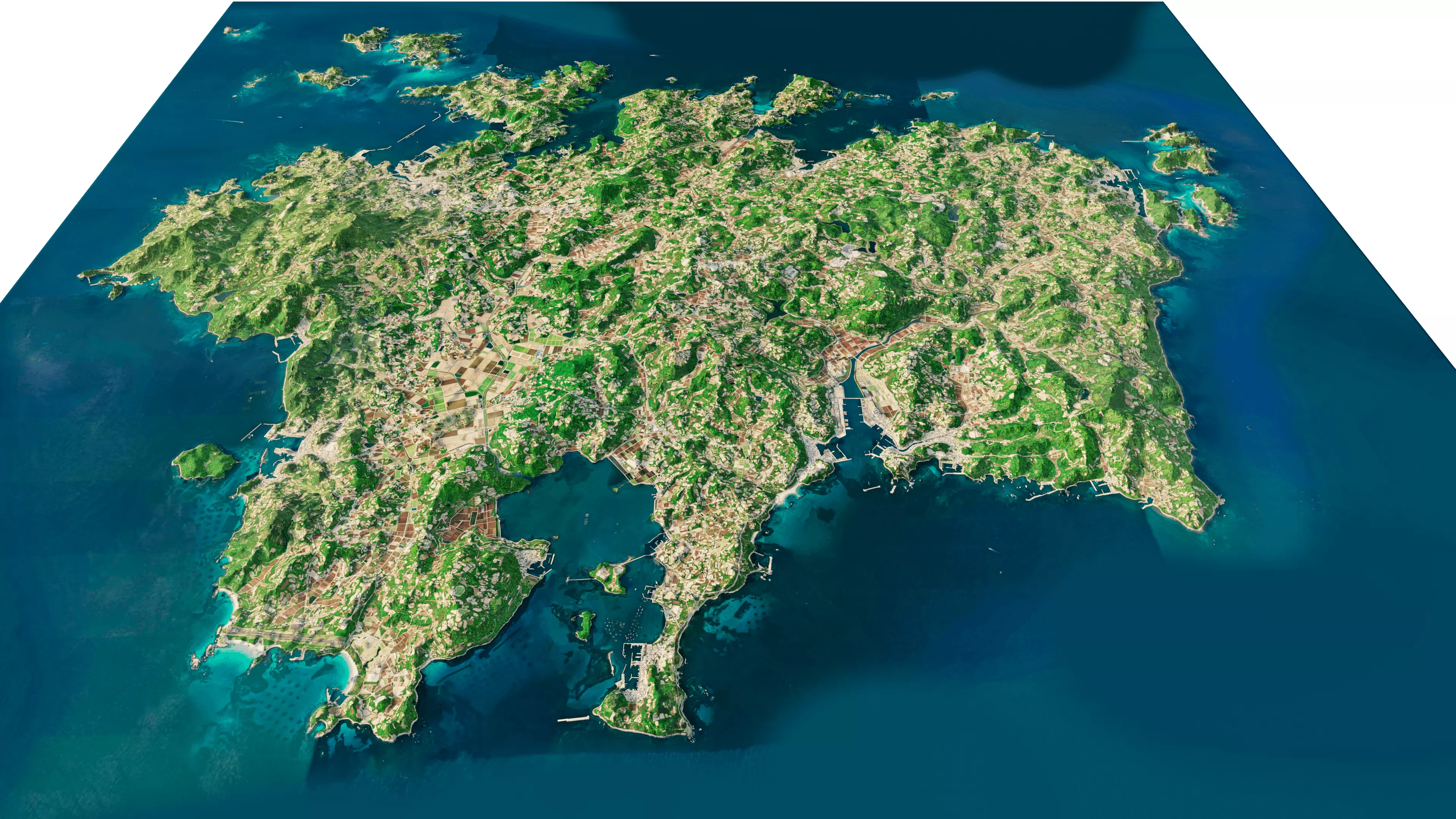 3d model landscape of Iki Island, Iki, Nagasaki, Japan.