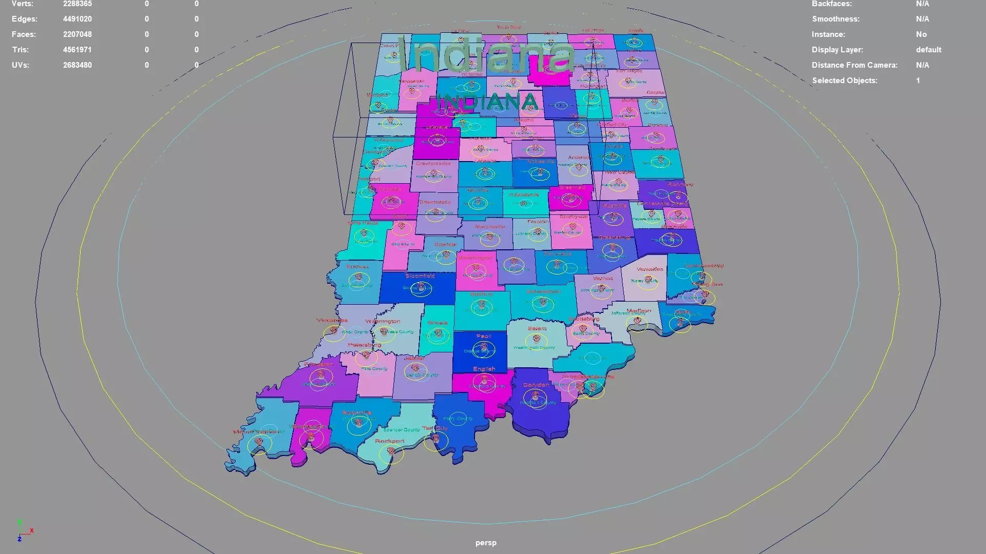 Indiana regions : The model is divided according to the administrative region of Indiana. Each region is clearly separated so you can easily isolate it or change the colors. Names are also editable and separate.