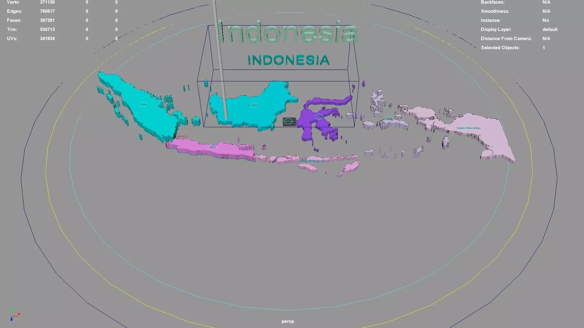 Indonesia regions : The model is divided according to the administrative region of Indonesia. Each region is clearly separated so you can easily isolate it or change the colors. Names are also editable and separate.