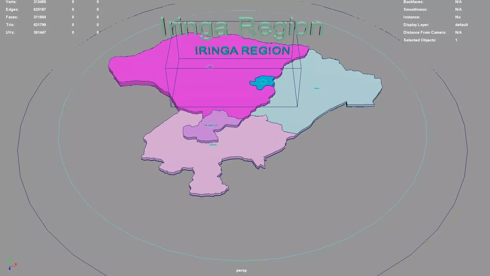 Iringa Region regions : The model is divided according to the administrative region of Iringa Region. Each region is clearly separated so you can easily isolate it or change the colors. Names are also editable and separate.