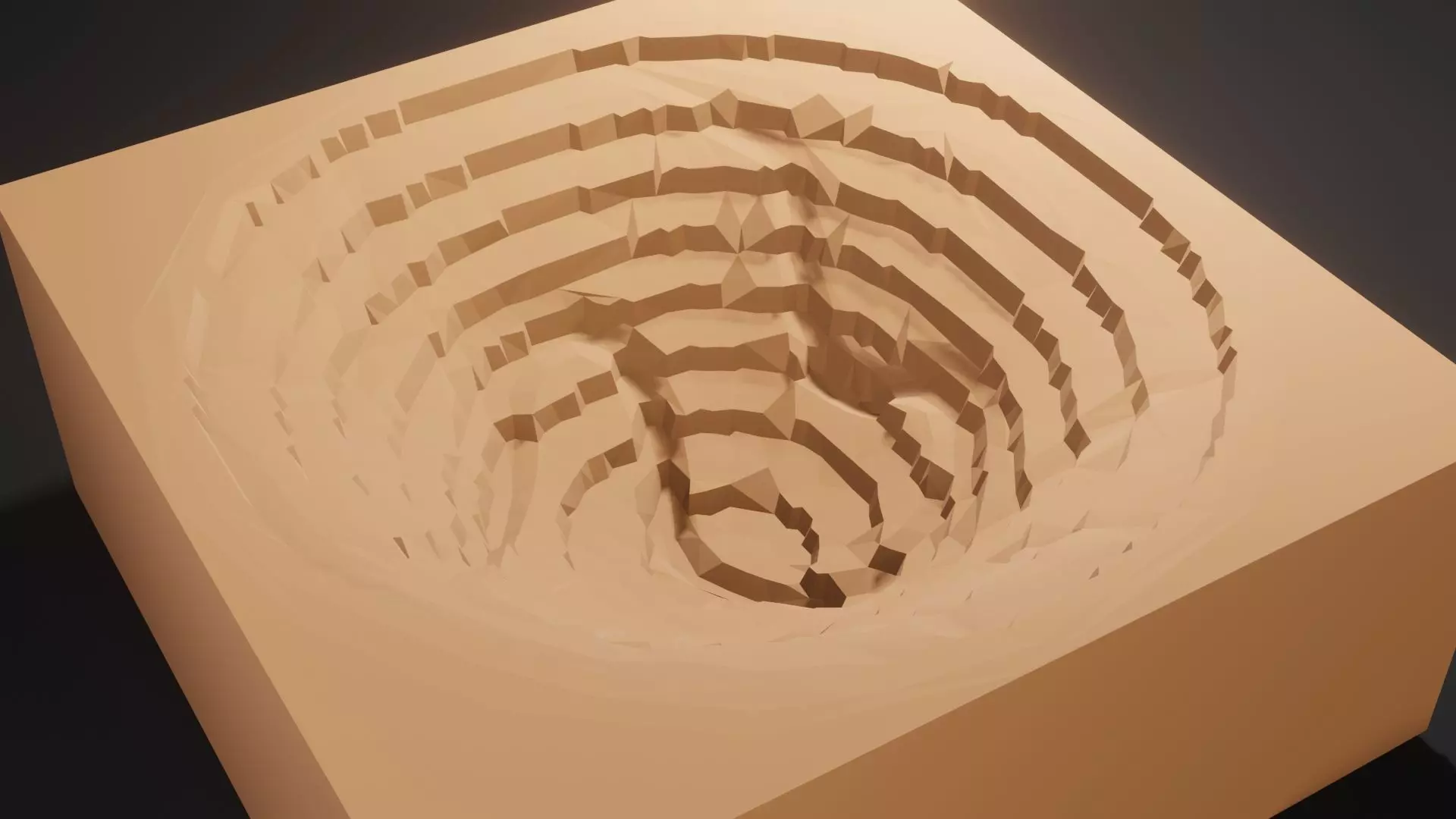 An isometric mining terrain modeled with a low-poly polygons look.