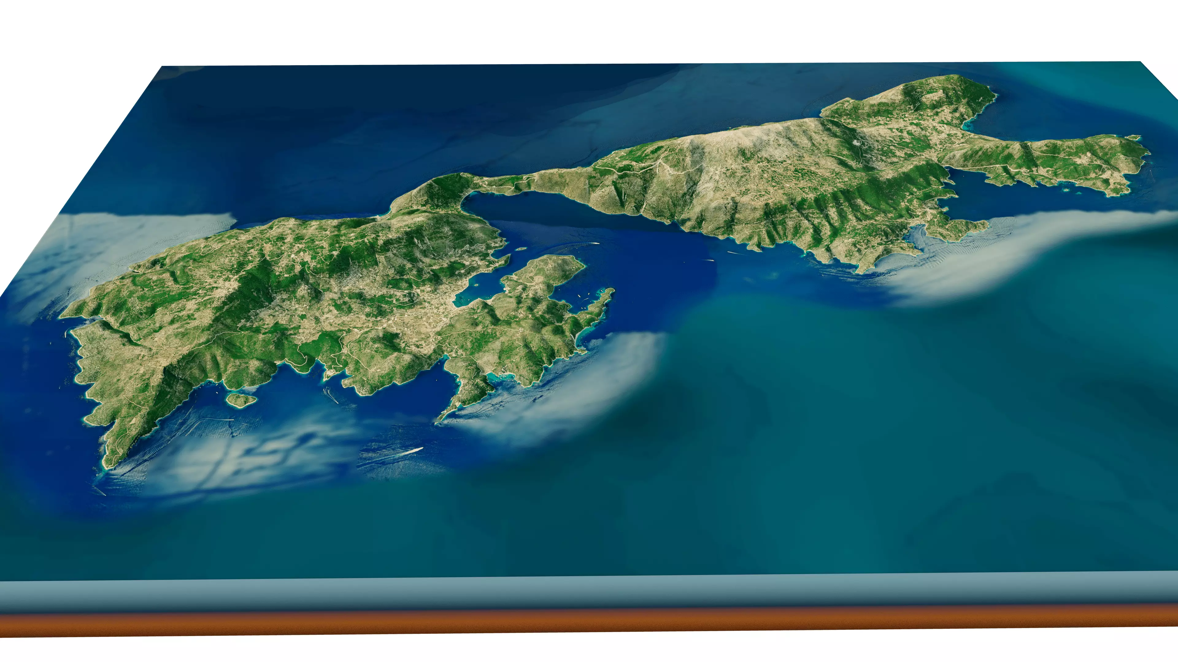 3d model landscape of Ithaca Island, Ithaca, Ionian Islands, Ionian Sea, Greece.