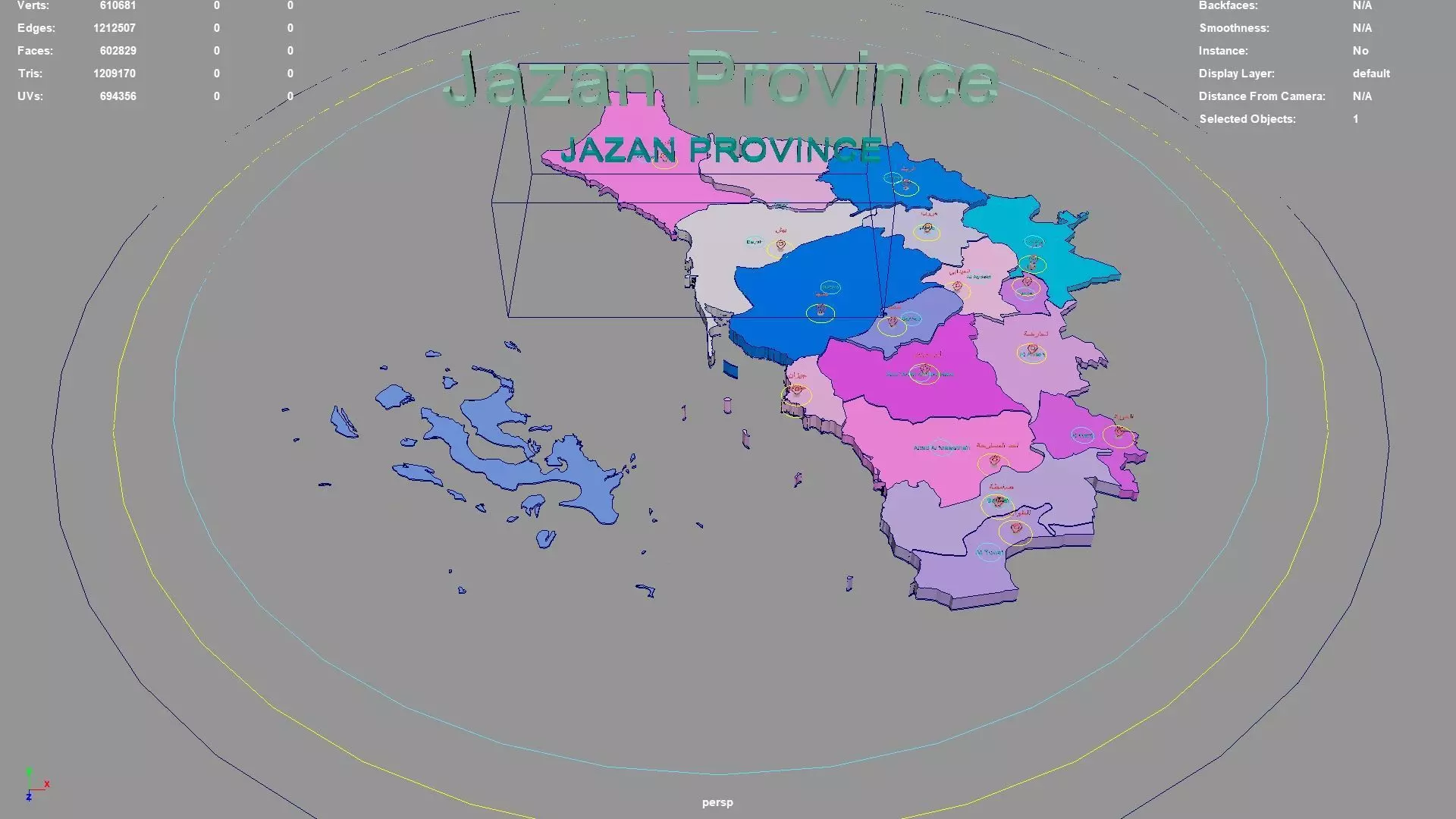 Jazan Province regions : The model is divided according to the administrative region of Jazan Province. Each region is clearly separated so you can easily isolate it or change the colors. Names are also editable and separate.