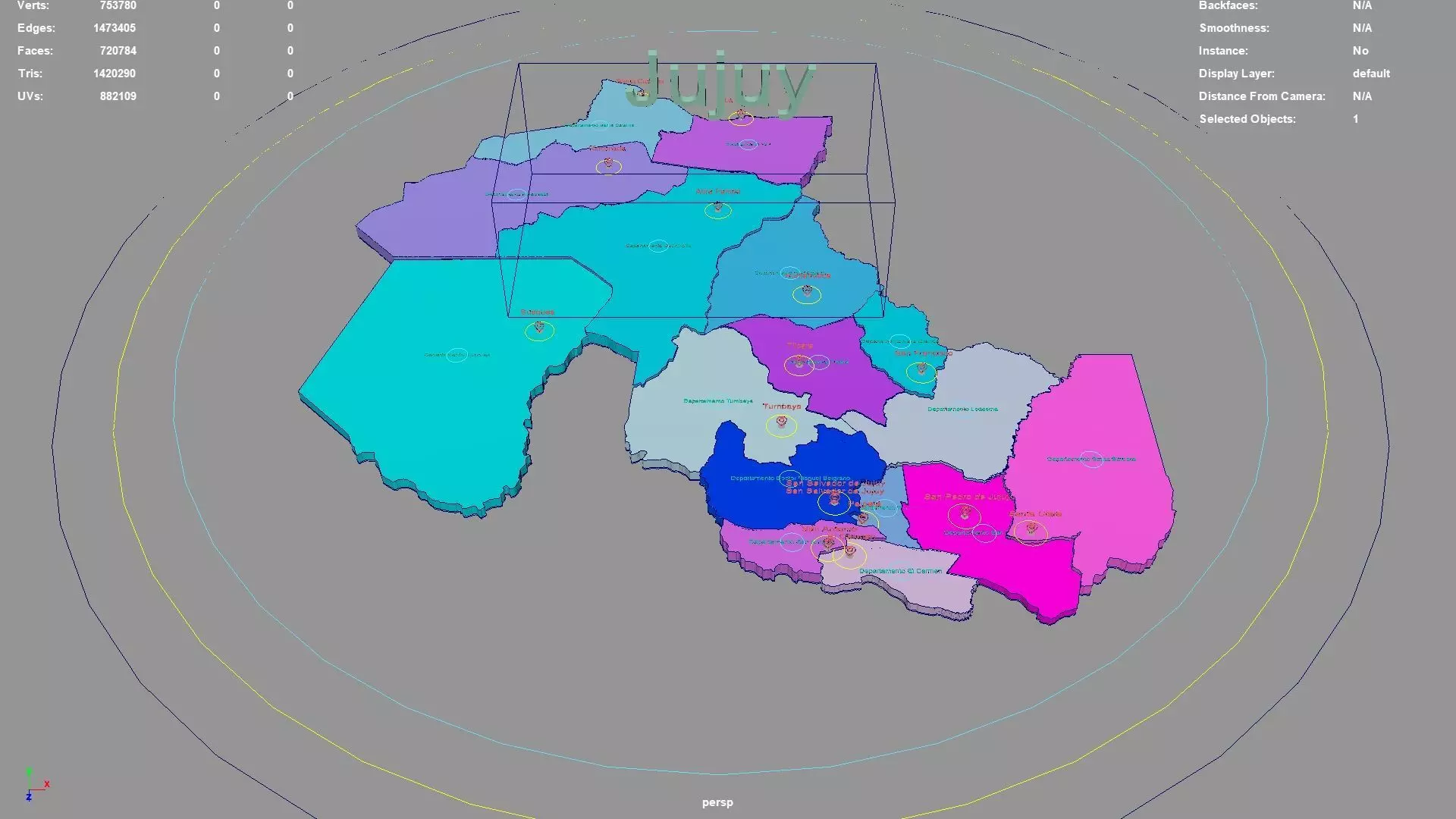Jujuy regions : The model is divided according to the administrative region of Jujuy. Each region is clearly separated so you can easily isolate it or change the colors. Names are also editable and separate.