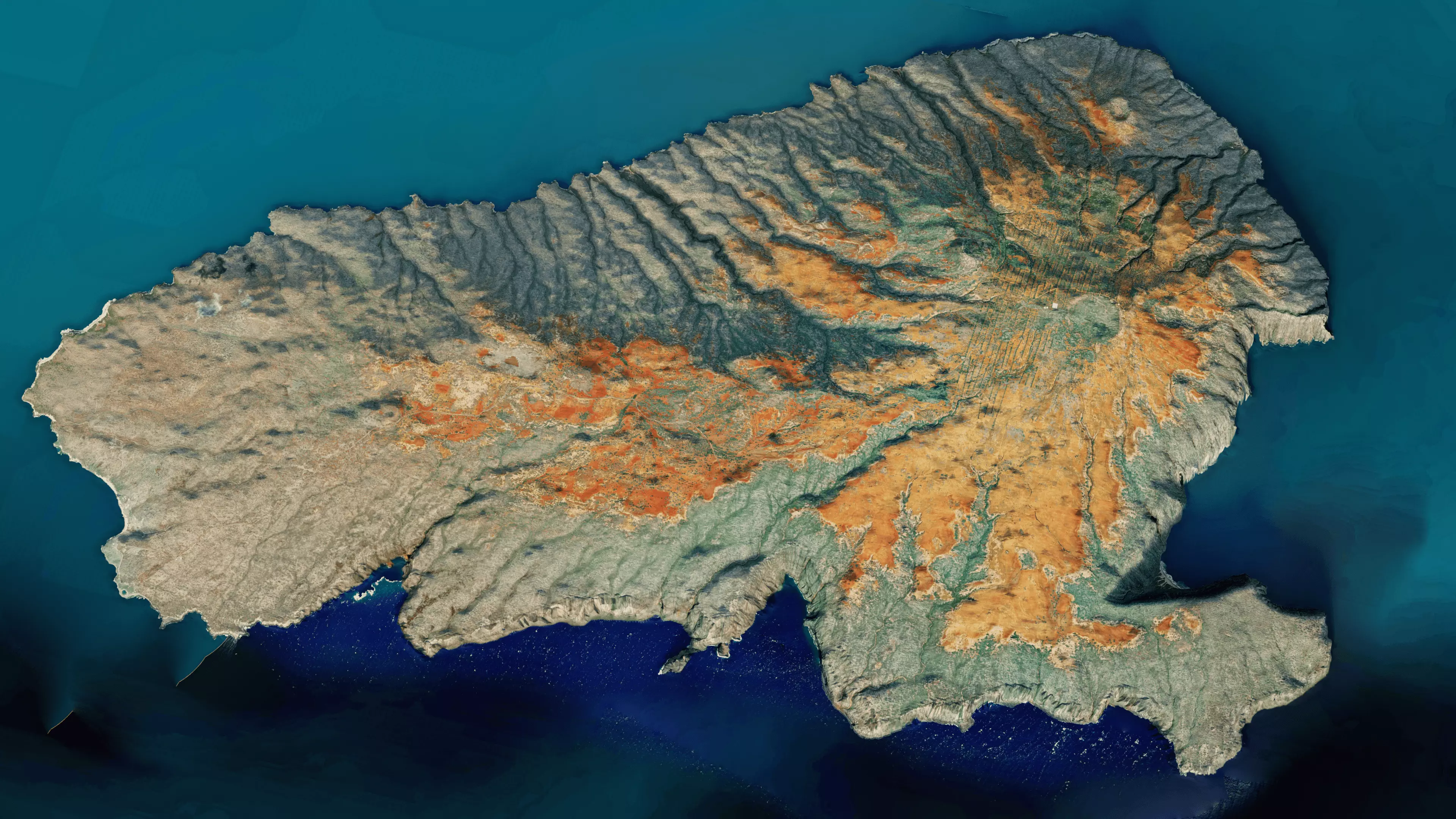 Kahoolawe island 3d model terrain. 3d model of the Island of Kahoʻolawe with its landscape of mountains, beaches and forests
