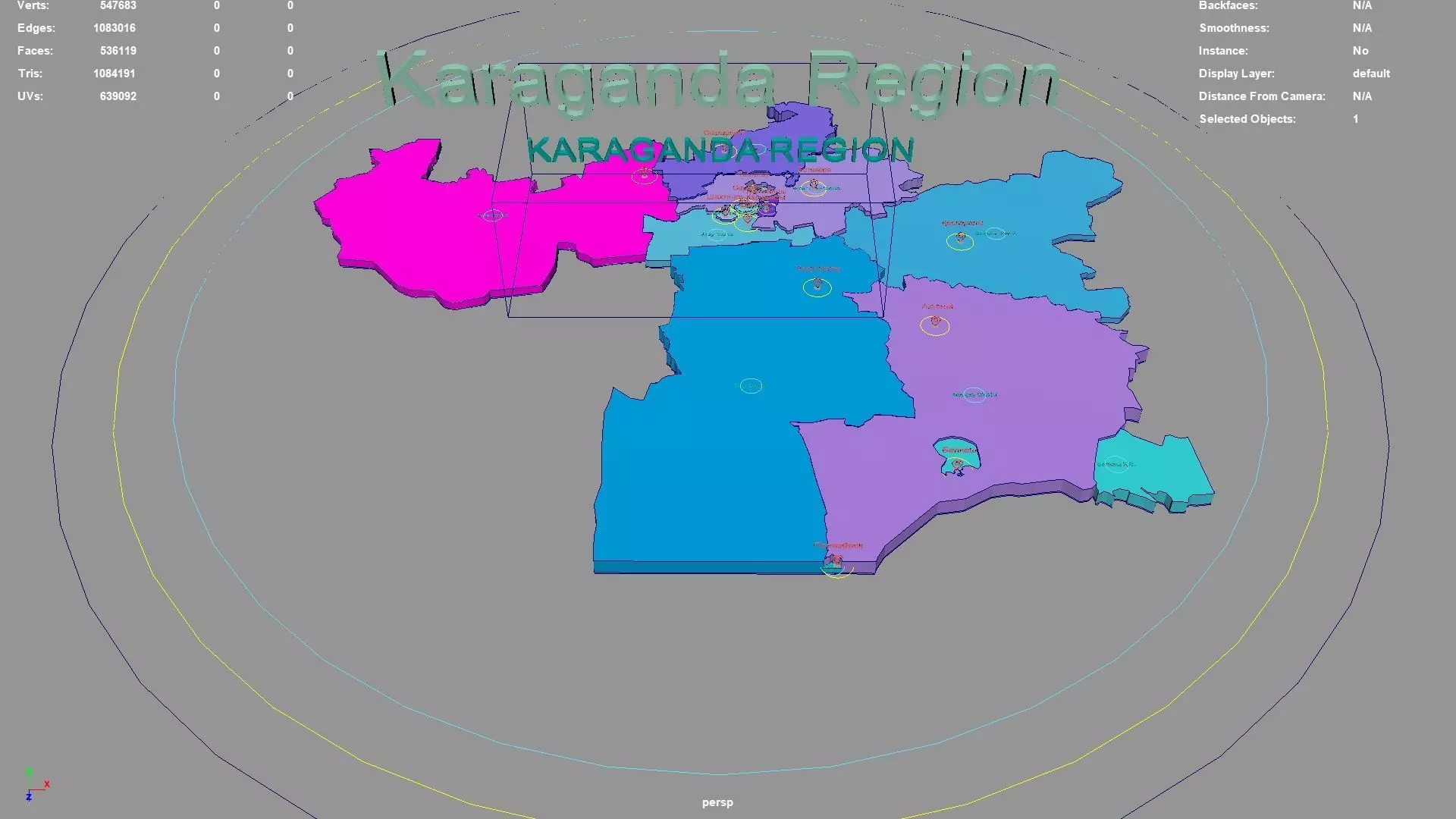 Karaganda Region, Kazakhstan .map,region,geography,political,geographic,administrative division,city Landscape,3D model.
