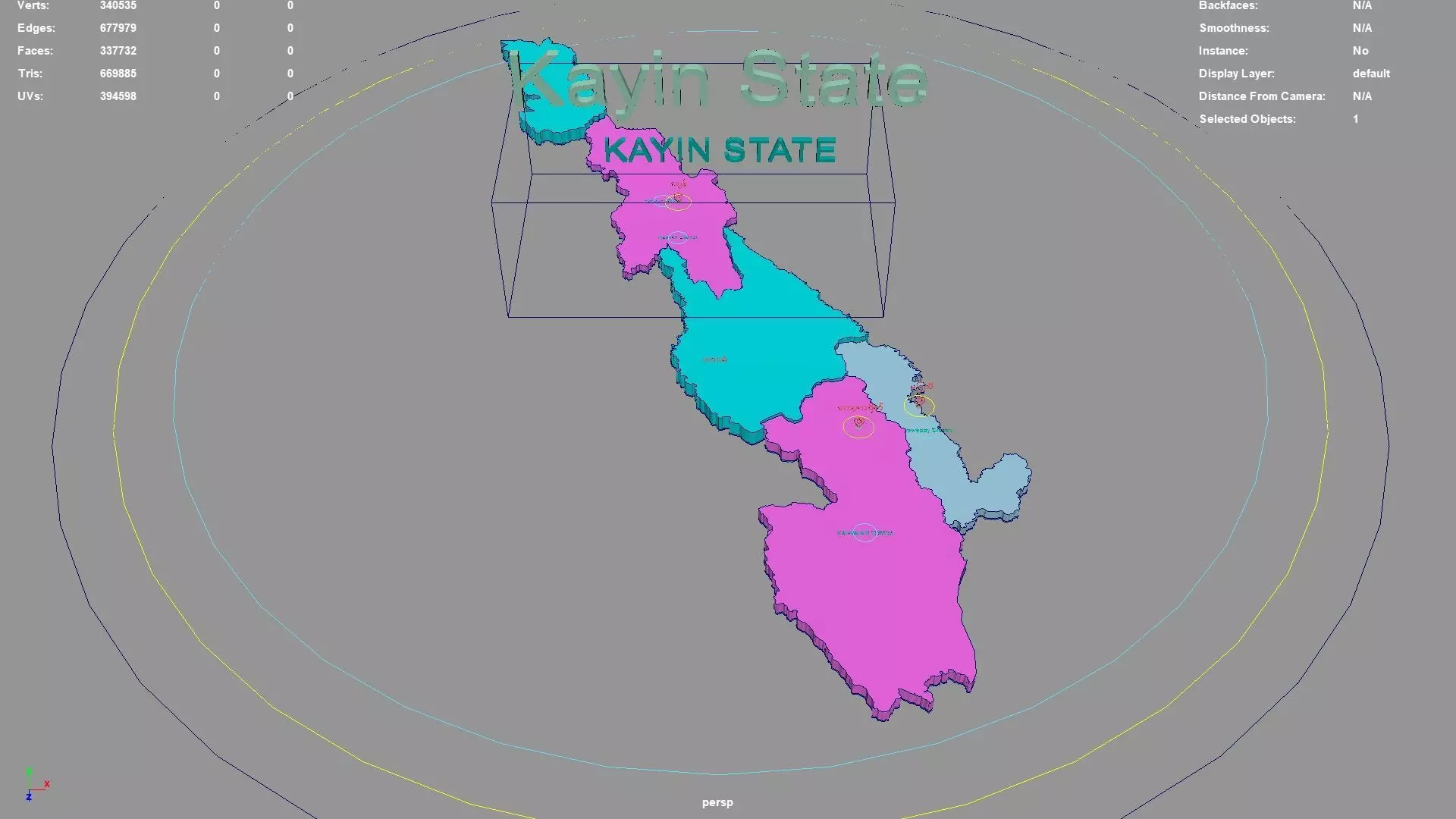 Kayin State regions : The model is divided according to the administrative region of Kayin State. Each region is clearly separated so you can easily isolate it or change the colors. Names are also editable and separate.