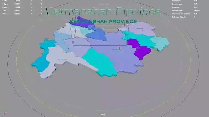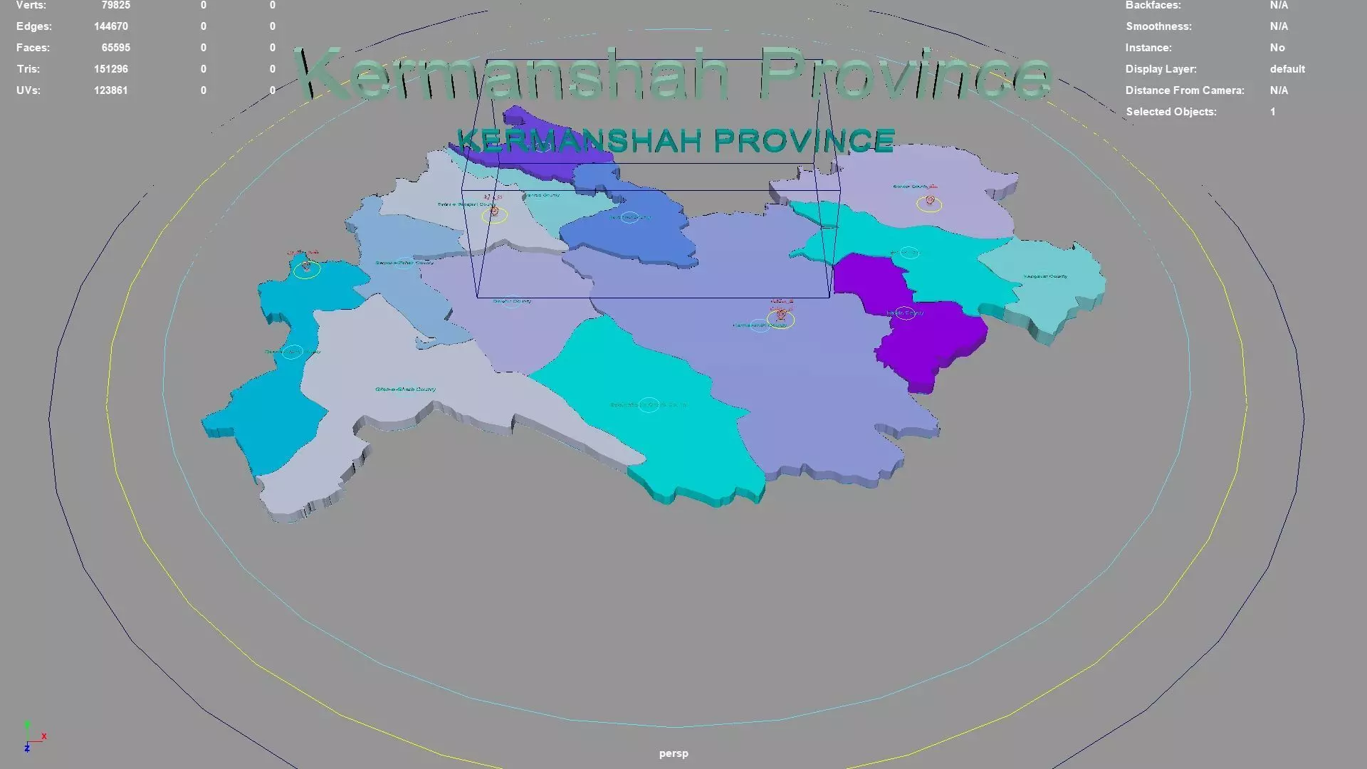 Kermanshah Province regions : The model is divided according to the administrative region of Kermanshah Province. Each region is clearly separated so you can easily isolate it or change the colors. Names are also editable and separate.