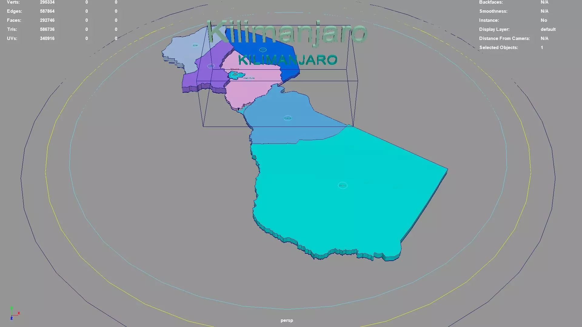 Kilimanjaro regions : The model is divided according to the administrative region of Kilimanjaro. Each region is clearly separated so you can easily isolate it or change the colors. Names are also editable and separate.