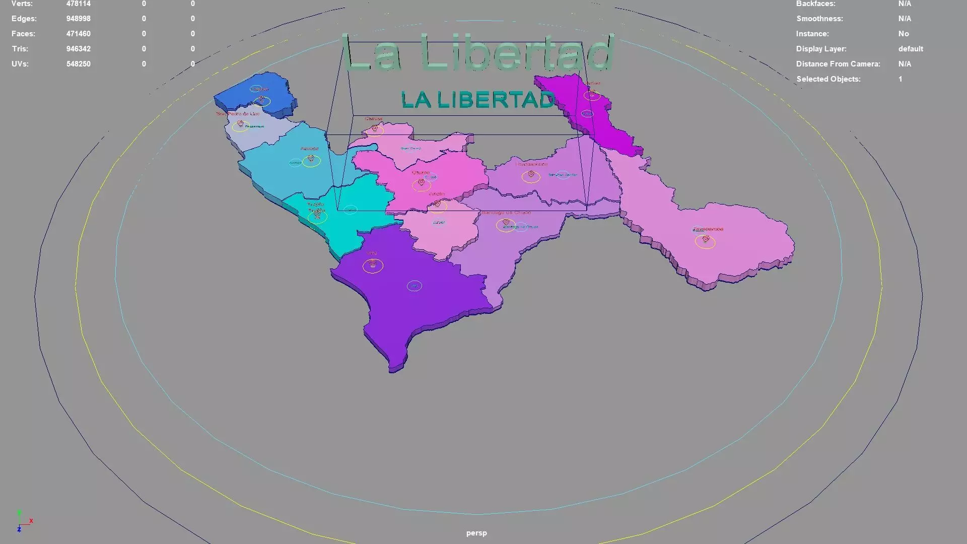 La Libertad regions : The model is divided according to the administrative region of La Libertad. Each region is clearly separated so you can easily isolate it or change the colors. Names are also editable and separate.