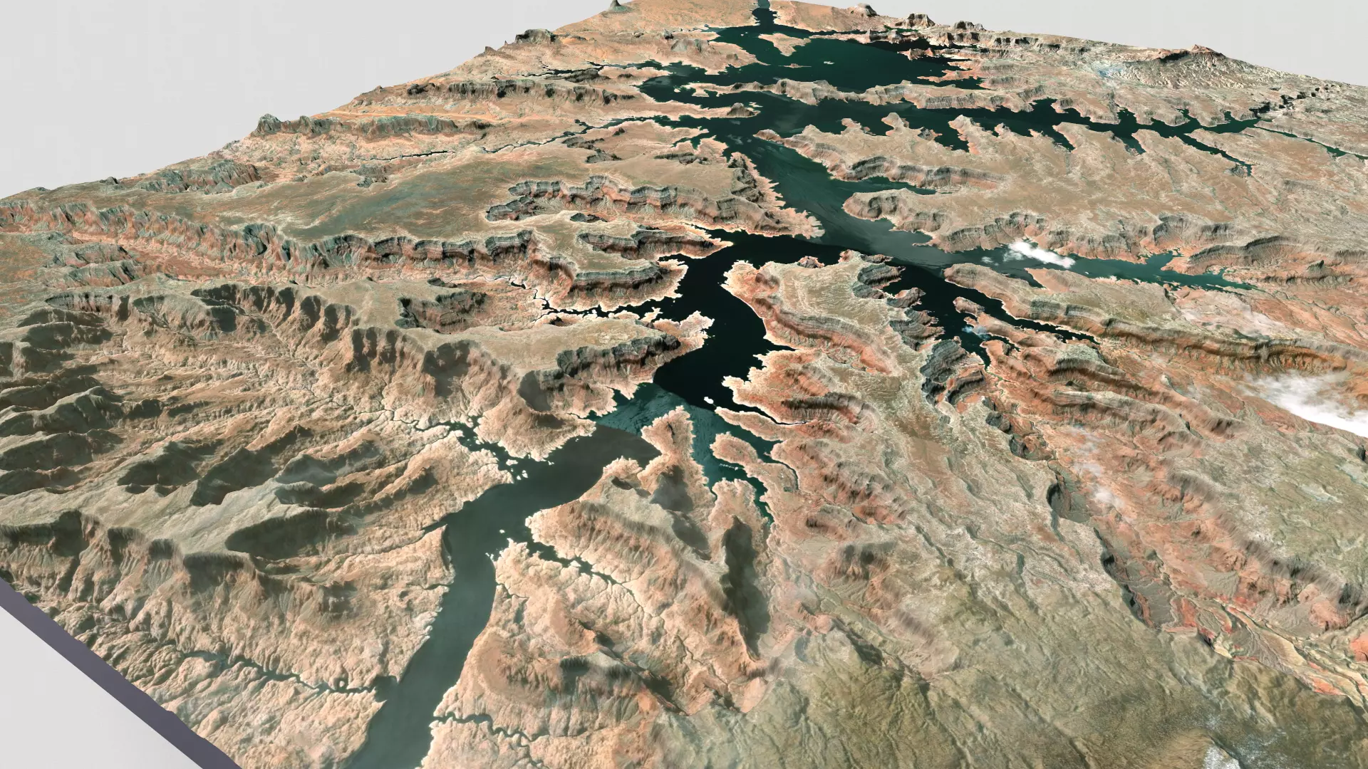 Powell is a reservoir on the Colorado River located in the U.S. states of Utah and Arizona. The second largest reservoir in the United States of America after Meade, holds 30 km³ of water at high water. In 1972, the lake and its surrounding areas became part of the Glen Canyon National Recreation Area.