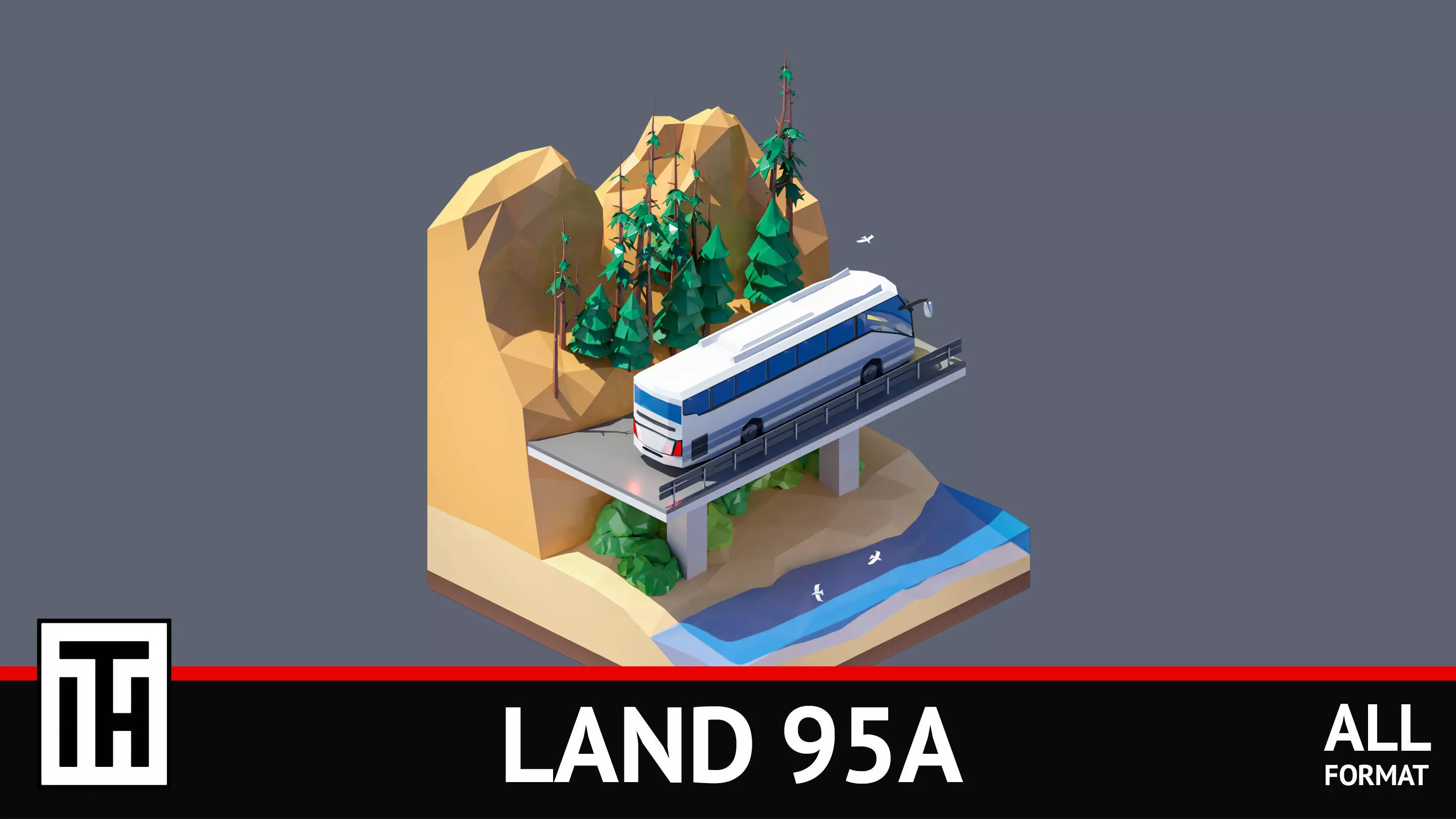 • landscape, tour bus, birds, lake, bridge, bushes, rocks, trees, spruces.
