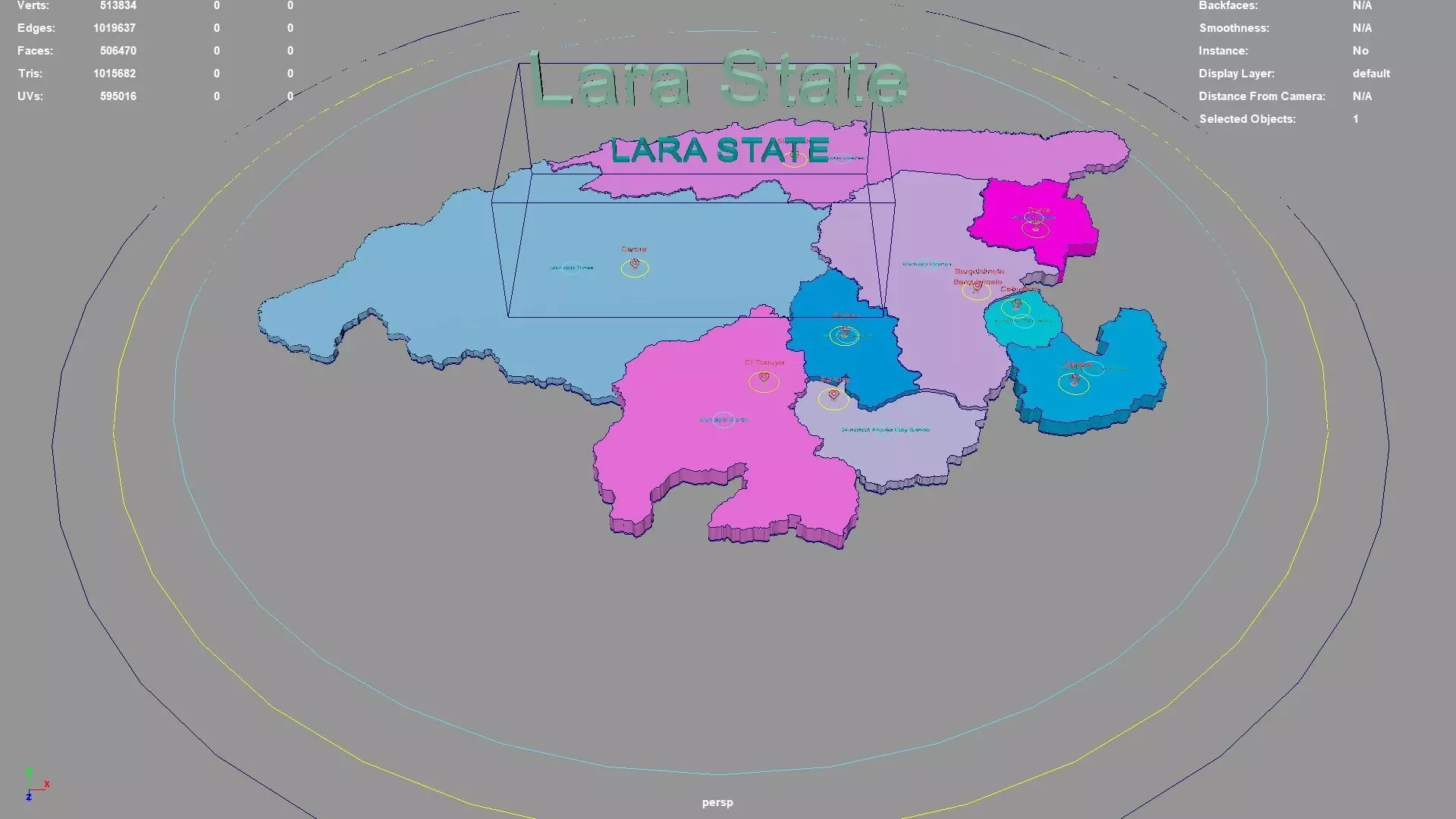 Lara State regions : The model is divided according to the administrative region of Lara State. Each region is clearly separated so you can easily isolate it or change the colors. Names are also editable and separate.