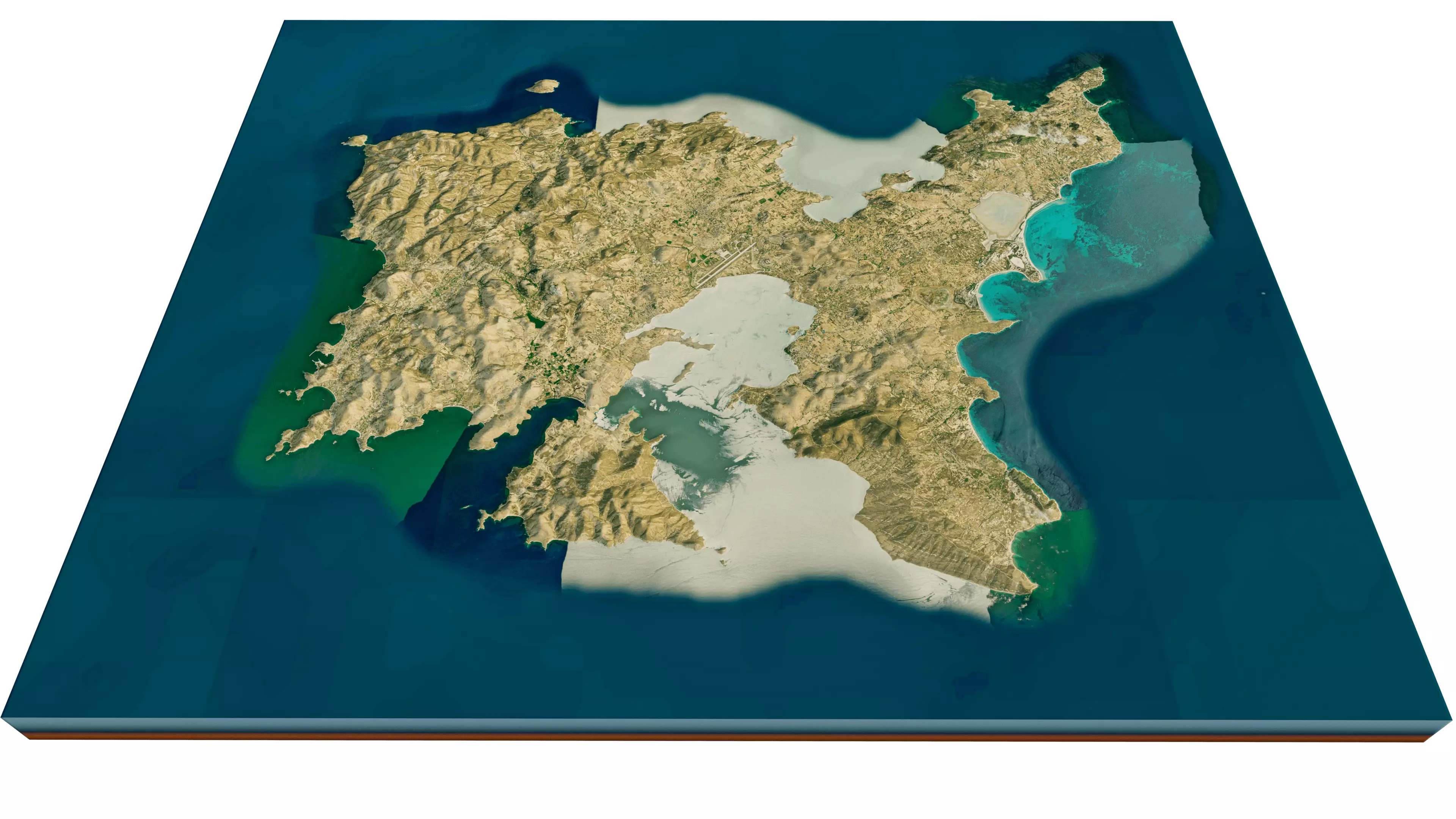 Lemnos Island 3d model terrain. 3d model of the Island of Lemnos with its landscape of mountains, beaches and forests.