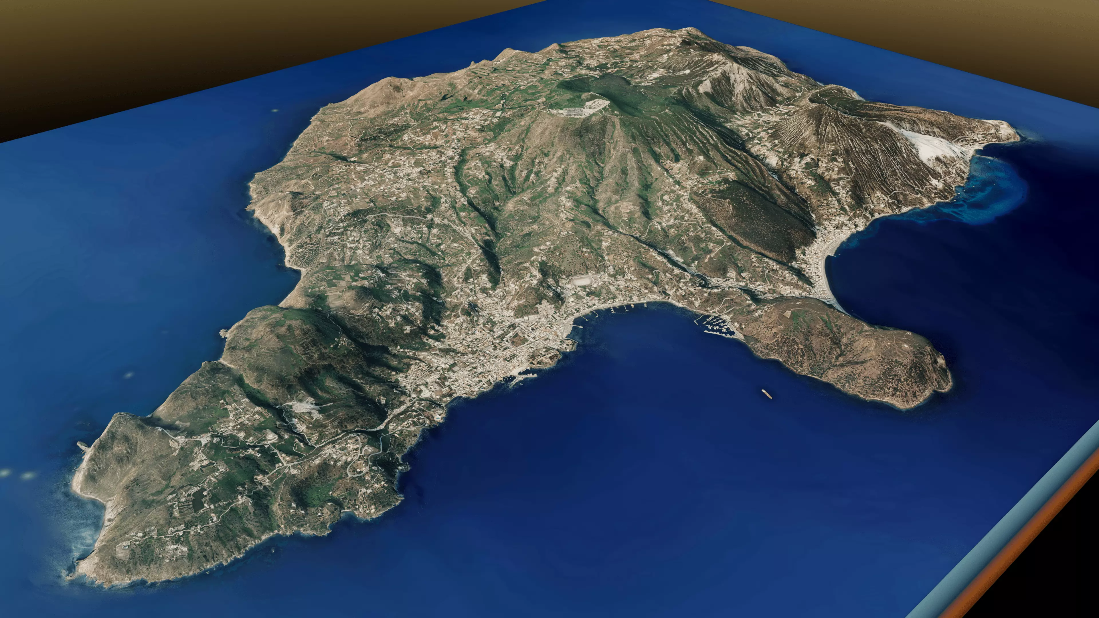 Lipari 3d model terrain. 3d model island of Lipari with its landscape of mountains, beaches and forests.