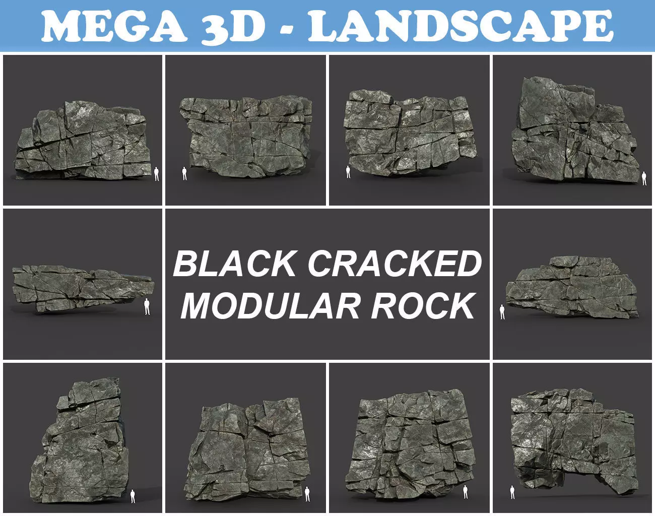 Low poly Black Cracked Modular Rock 220106 Low-poly 3D model