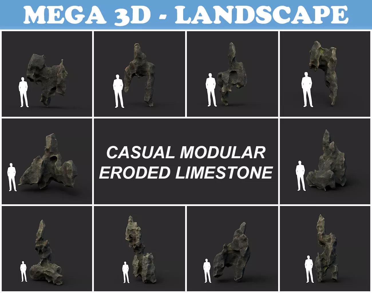 Low poly Casual Eroded Limestone Modular 210722 Low-poly 3D model