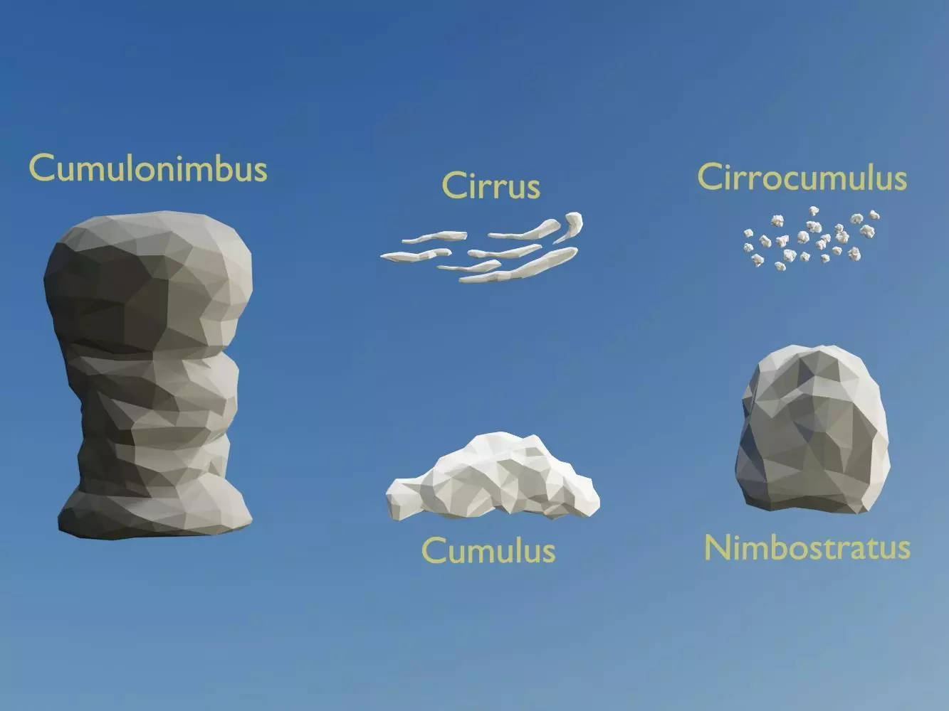 -.obj/.mtl files (each cloud type is a separate obj file with origin positioned at center of geometry)