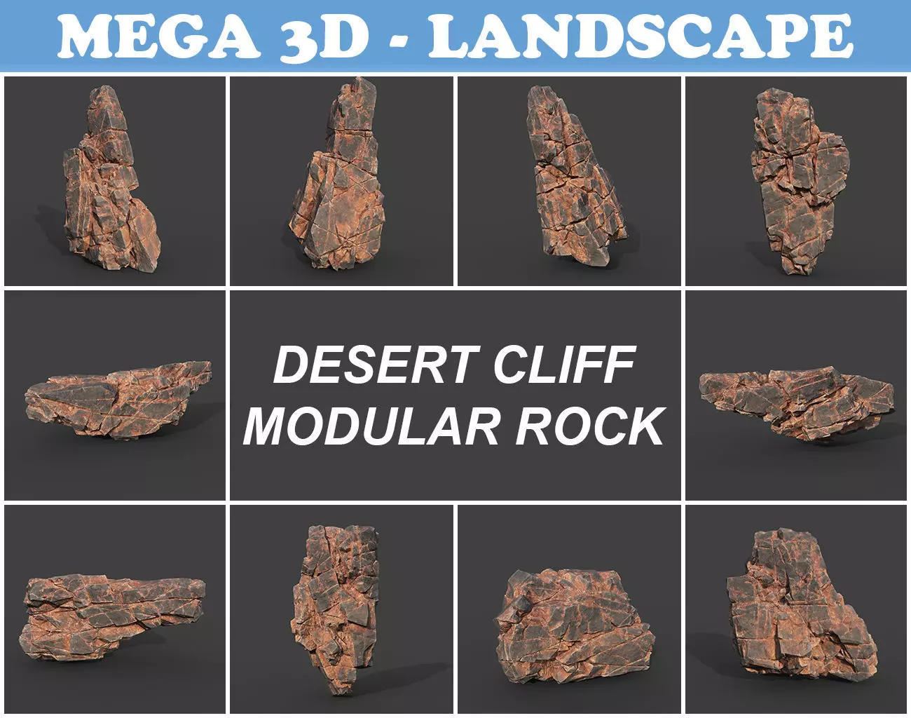 Low poly Desert Cliff Modular 211219 Low-poly 3D model