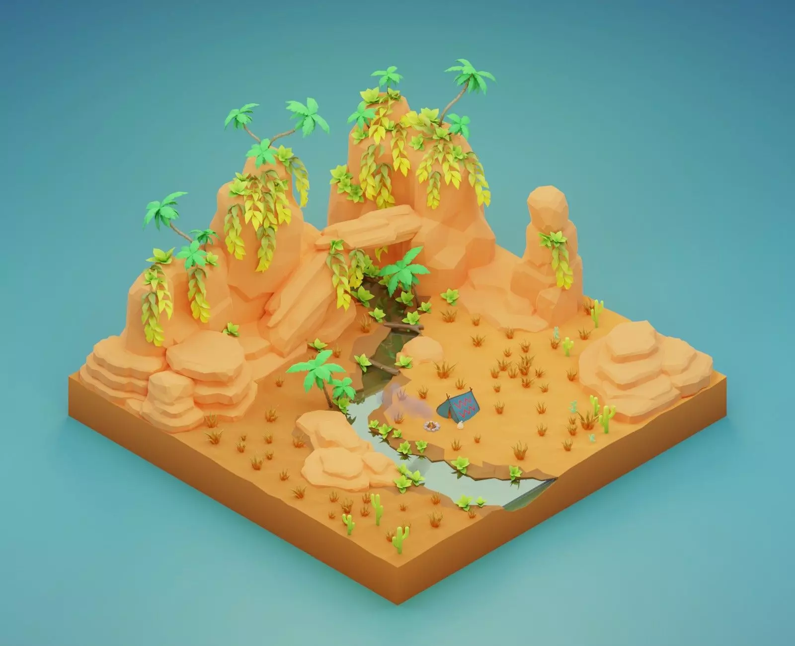 Set of Low poly desert rocks. Suitable for creating landscape, scenery or diorama. Contains 25 types of rocks, as well as 3 LODs for each of them. LODs are in .blend file. The models are textured using a 256x256 pixel color texture. There is also a 128x128, 64x64 and 1x1 pixel texture. The number of polygons and vertices is indicated for 25 rocks, excluding LODs.