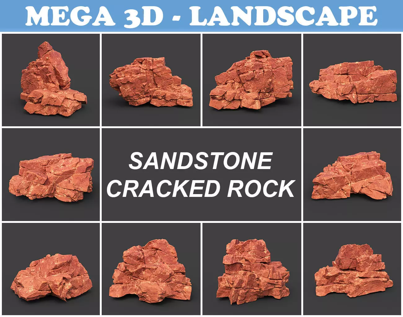 Low poly Sandstone Cracked Rock 220124 Low-poly 3D model