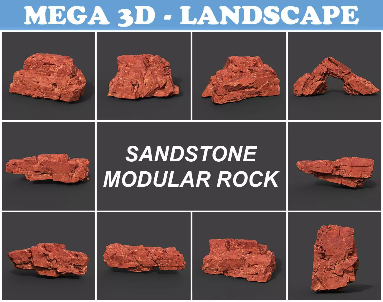 Low poly Sandstone Modular Rock 211210 Low-poly 3D model