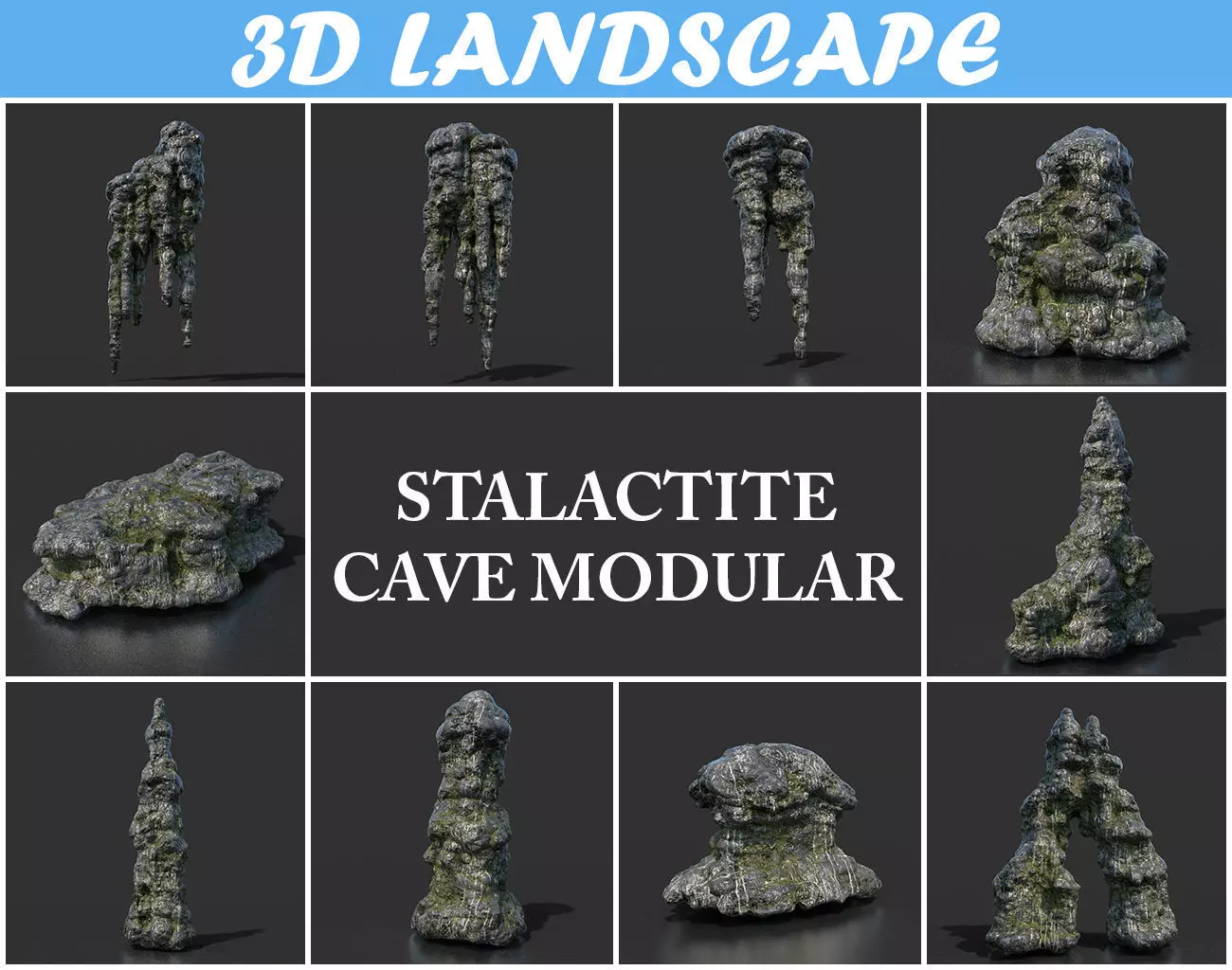 Low poly Stalactite Cave Modular Pack B2 2020 Low-poly 3D model