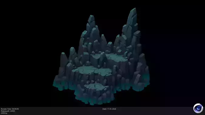 Stylized Dark Rock Cliffs - Low Poly Game Ready AssetThis is a high-quality, stylized rock cliff formation featuring a dark, moody aesthetic with cyan/teal highlights. The model is designed with sharp, blocky edges and cracked platform surfaces, making it an excellent choice for fantasy environments, dark caverns, or otherworldly landscapes.