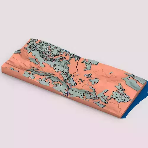 Low Poly Terrain Map with Hills and Rivers 3D model