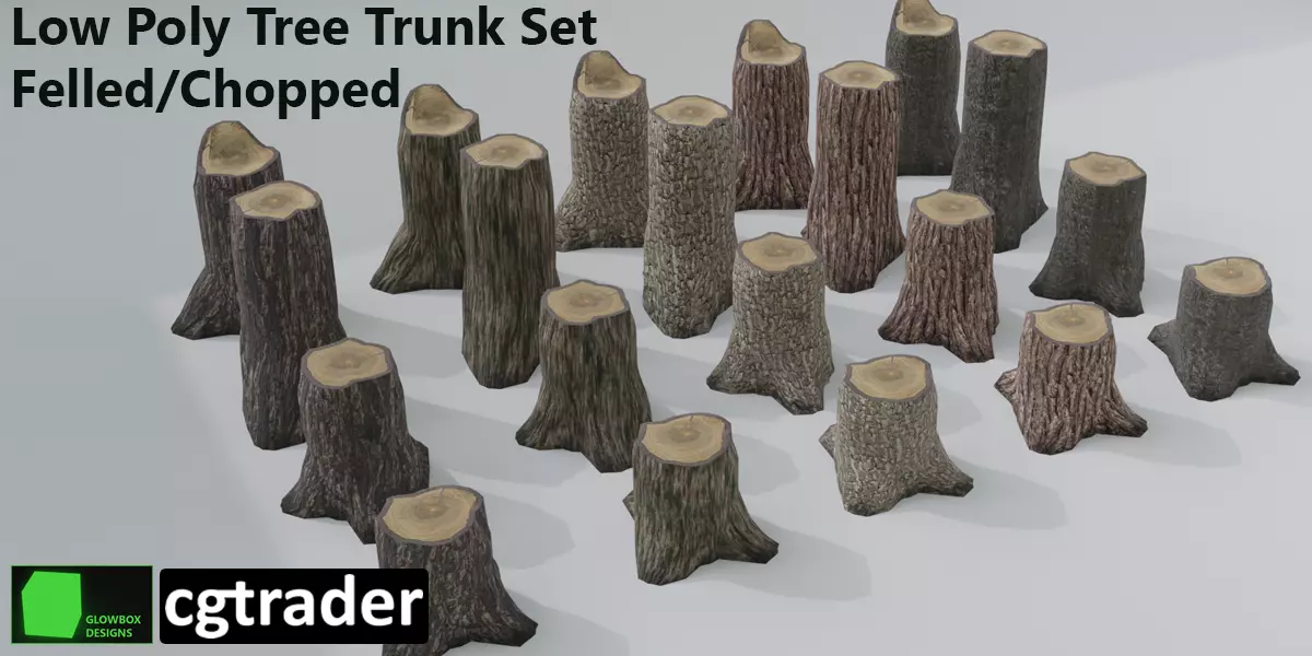 This is a pack of low poly tree trunks, contaning five unique bark skins. Scatter these around your forest to add some natural nuances.