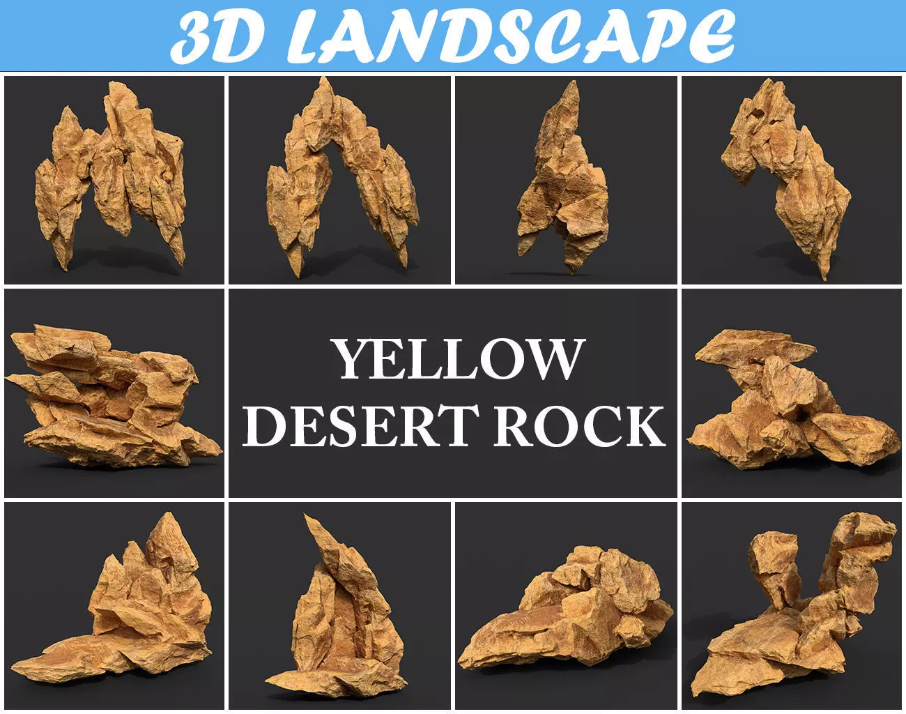 Low poly Yellow Rock Desert B 190418 Low-poly 3D model