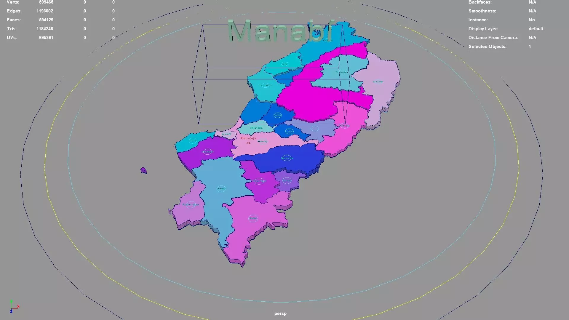 Manabí regions : The model is divided according to the administrative region of Manabí. Each region is clearly separated so you can easily isolate it or change the colors. Names are also editable and separate.