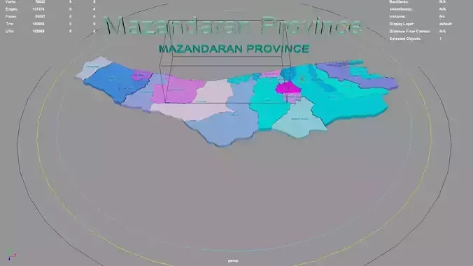 Mazandaran Province regions : The model is divided according to the administrative region of Mazandaran Province. Each region is clearly separated so you can easily isolate it or change the colors. Names are also editable and separate.