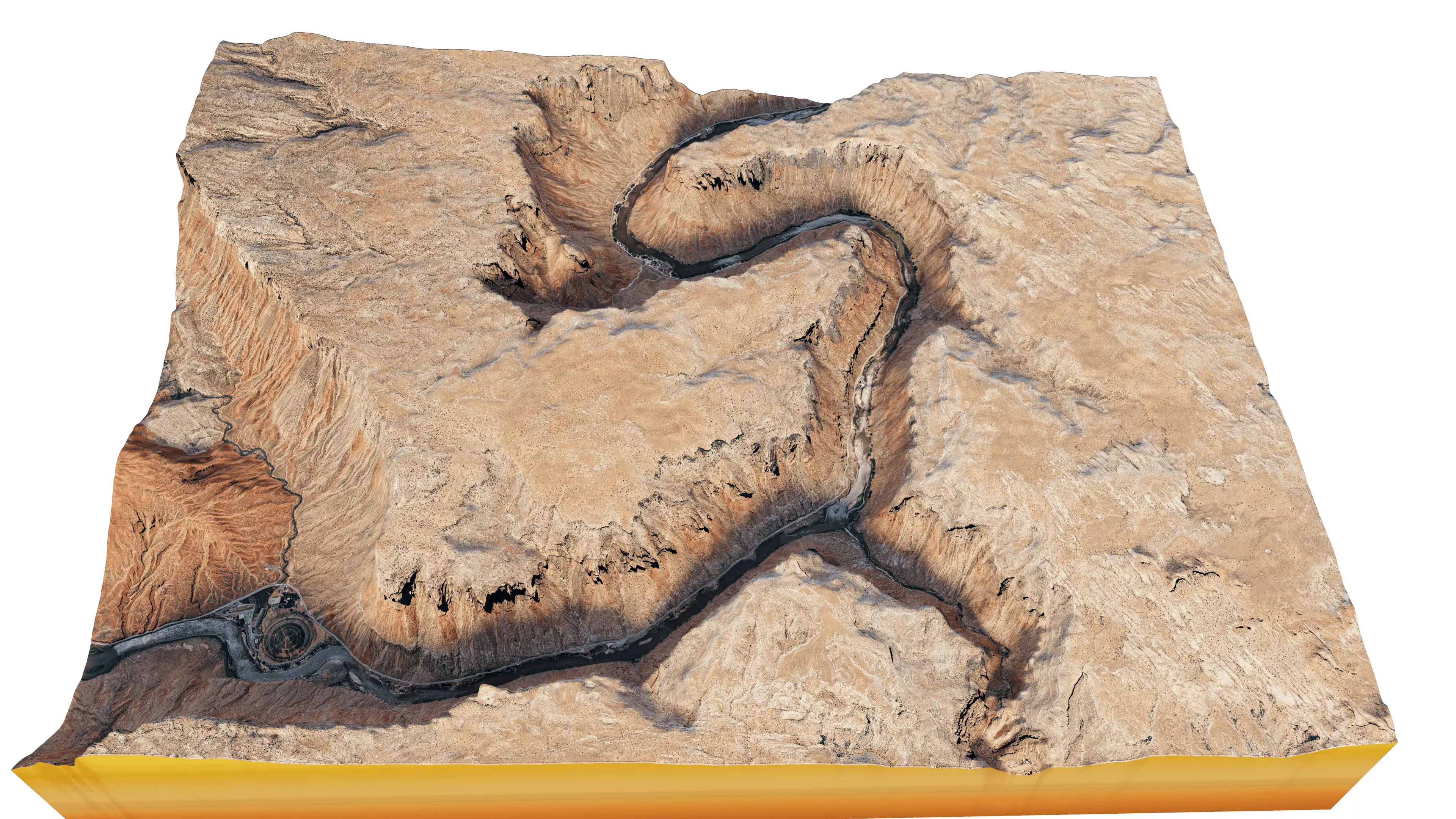 Beautiful winding canyon and the Colorado River flowing below 3d model terrain.