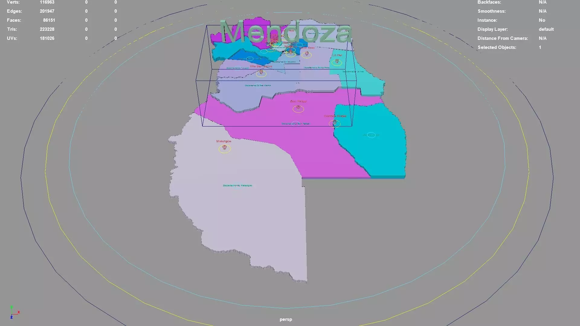 Mendoza regions : The model is divided according to the administrative region of Mendoza. Each region is clearly separated so you can easily isolate it or change the colors. Names are also editable and separate.