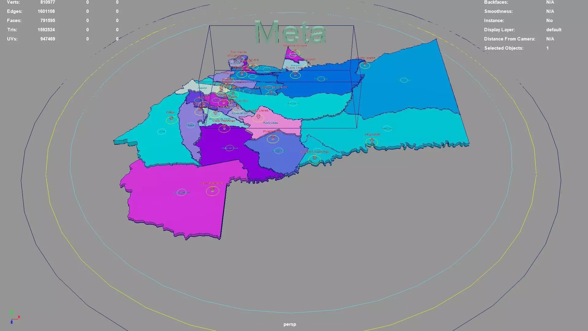 Meta regions : The model is divided according to the administrative region of Meta. Each region is clearly separated so you can easily isolate it or change the colors. Names are also editable and separate.
