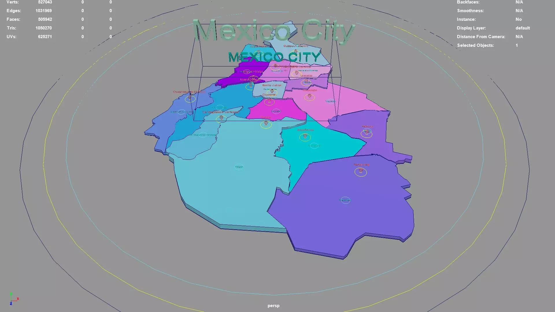 Mexico City regions : The model is divided according to the administrative region of Mexico City. Each region is clearly separated so you can easily isolate it or change the colors. Names are also editable and separate.