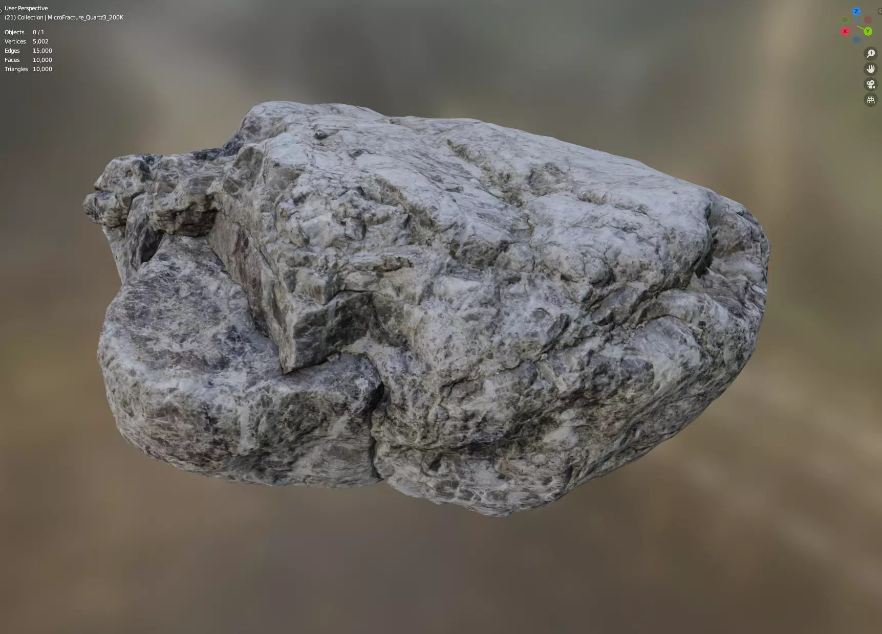 Photorealistic MicroFractured Quartz made from Photogrammetry. 8K Texture Files : Color, Normal, and Ambient Occlusion. Model origins are centered by mass. Models are provied as FBX and OBJ for maximum interoperability with 3d programs and game engines. LODs are available with the following face counts: 1K, 5K, 10K, 200k, 2Mil, 15Mil