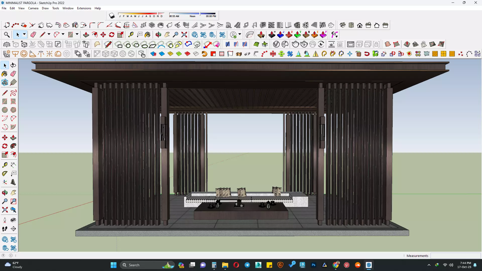 The model has material settings that define how surfaces look (color, shine, transparency, etc.).