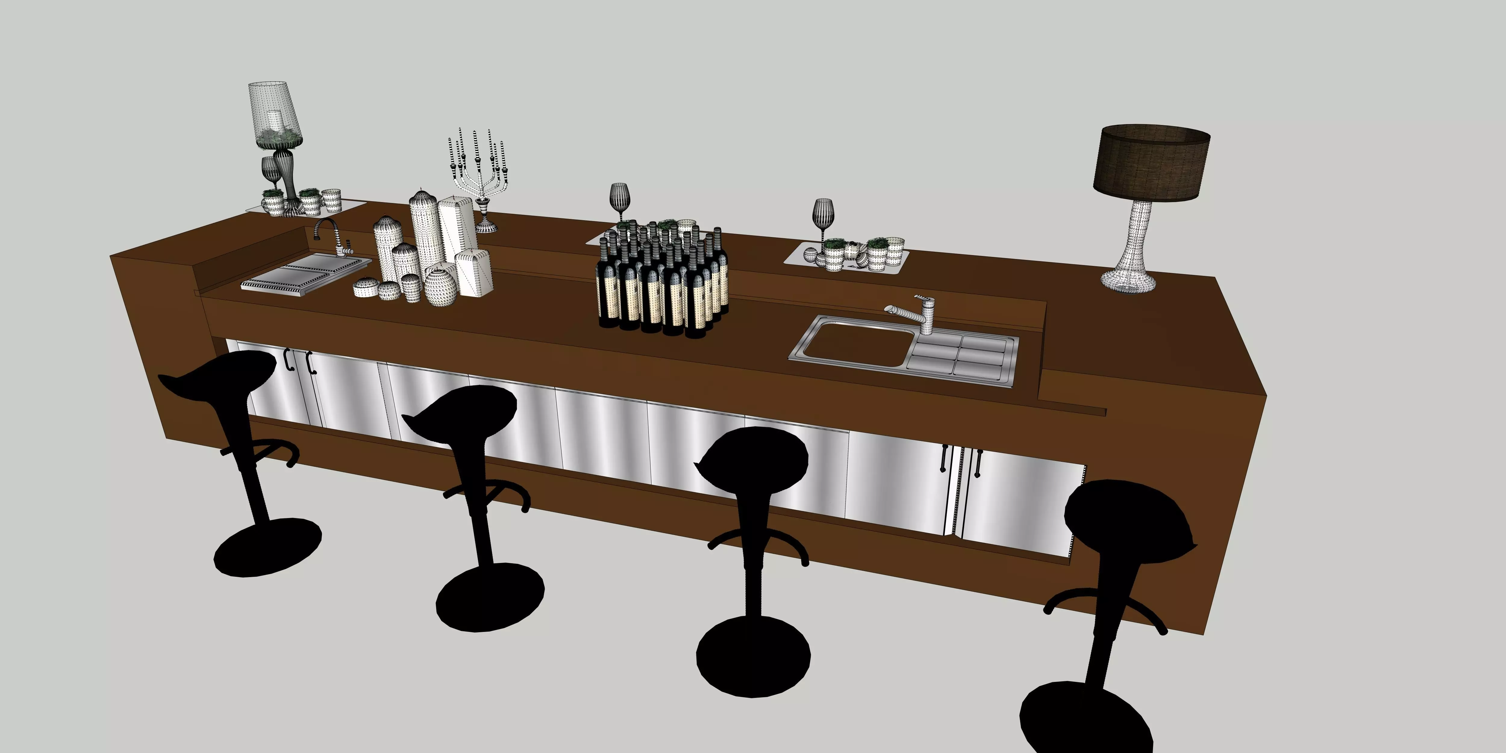 This 3D model features a stylish modern bar counter set, complete with bar stools, a sink, and decorative accessories. Perfect for interior designs, restaurant visualizations, or hospitality spaces, this model showcases a clean and sophisticated design, including intricate details such as bottles, cups, and a lamp. The counter is designed with sleek metal cabinetry and a spacious wooden top. The bar stools are minimalist and modern, contributing to a contemporary look. Ideal for architectural visualizations and interior design projects.