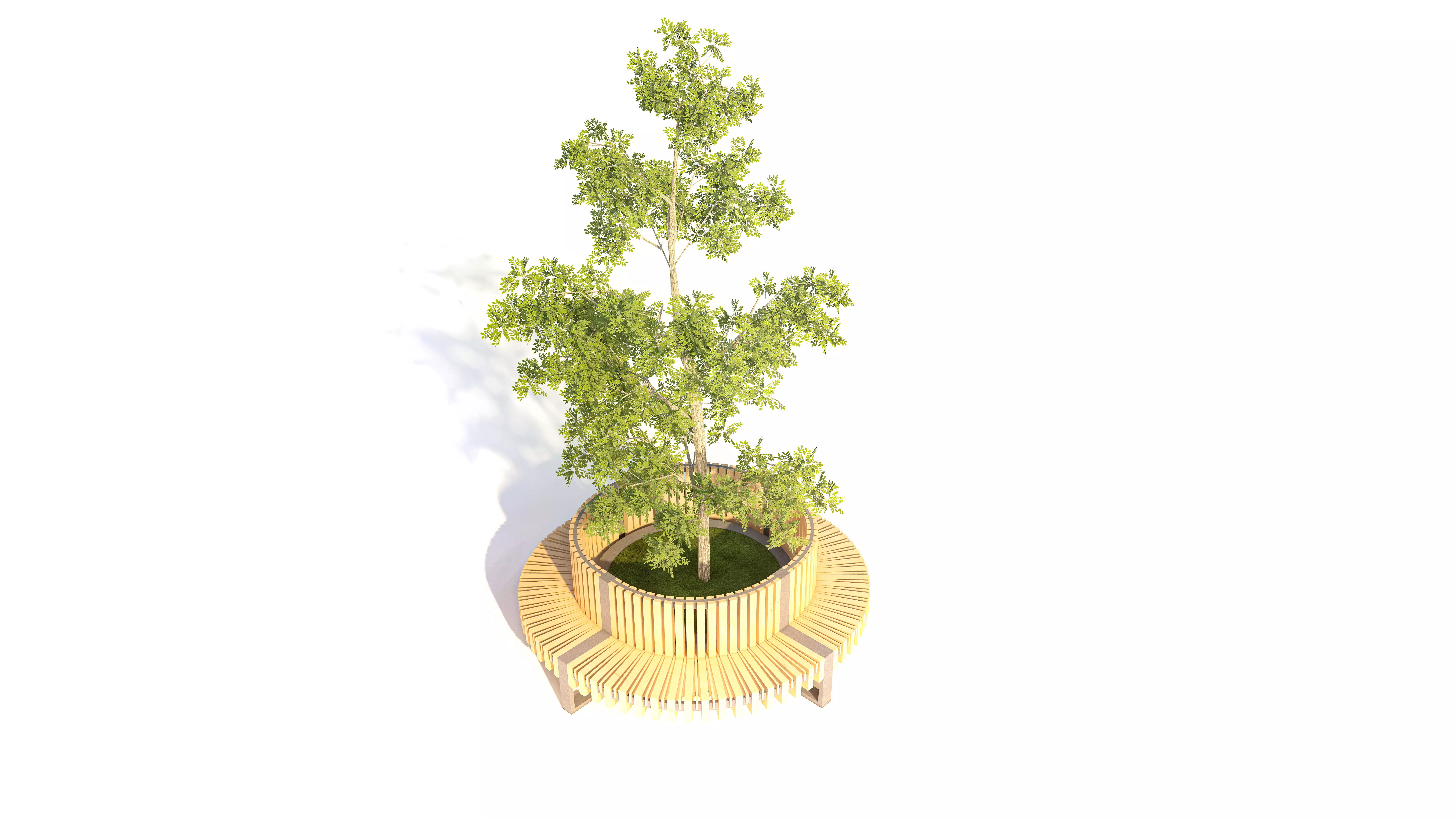 Integrated Design: Combines comfortable circular seating with a protective planter box for a tree.