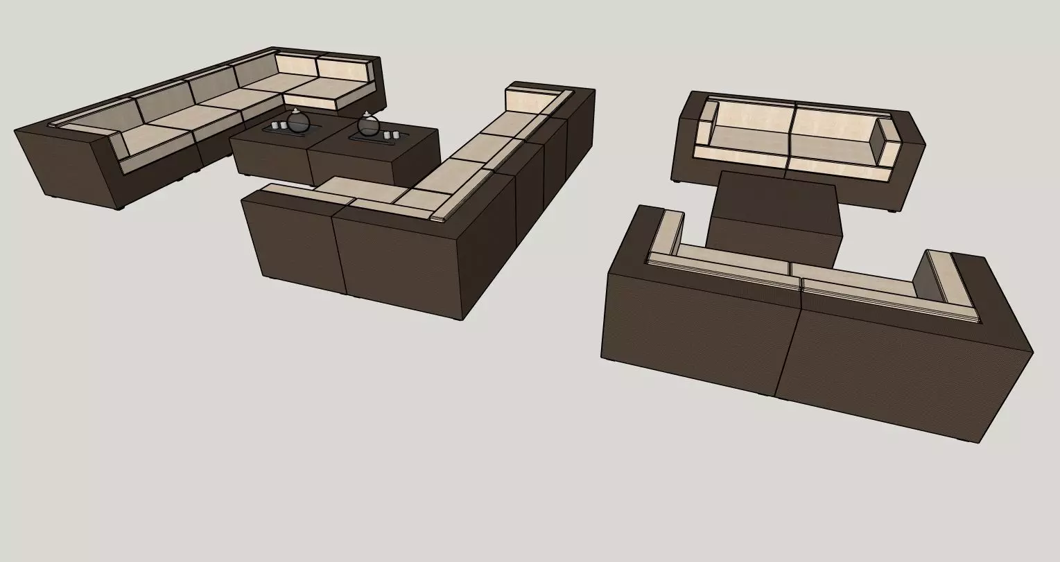 This 3D model features a contemporary sectional sofa set complete with matching coffee tables, designed for stylish and comfortable living spaces. The sofa is designed with clean lines and modern aesthetics, perfect for interior designs aiming for a minimalist or chic look. The soft, neutral cushions combine with the dark-toned wooden frame for a sophisticated contrast, making this piece ideal for both residential and commercial spaces. The coffee tables have a sleek, modern design to complement the sectional, creating a cohesive and polished look for any room. This model is ideal for use in architectural visualizations, interior design projects, or living room mockups.