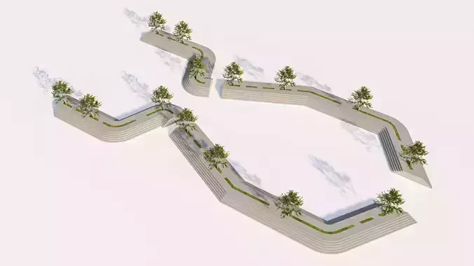 This is a high-detail 3D model of a Landscape Stepping and Seating Feature, designed specifically for urban park and public space visualizations (Arch-Viz). This asset functions as both a decorative focal point and a functional social space.